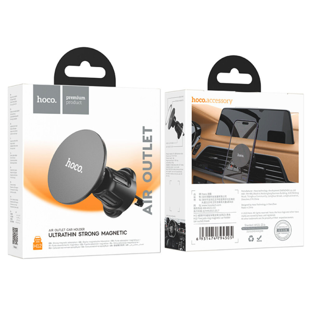 HOCO H12 — это компактный и стильный магнитный держатель, который надежно фиксирует ваш смартфон в удобном положении прямо перед глазами. Благодаря креплению в вентиляционную решётку водитель может легко следить за маршрутом или отвечать на вызовы без лишних движений и отвлечений.