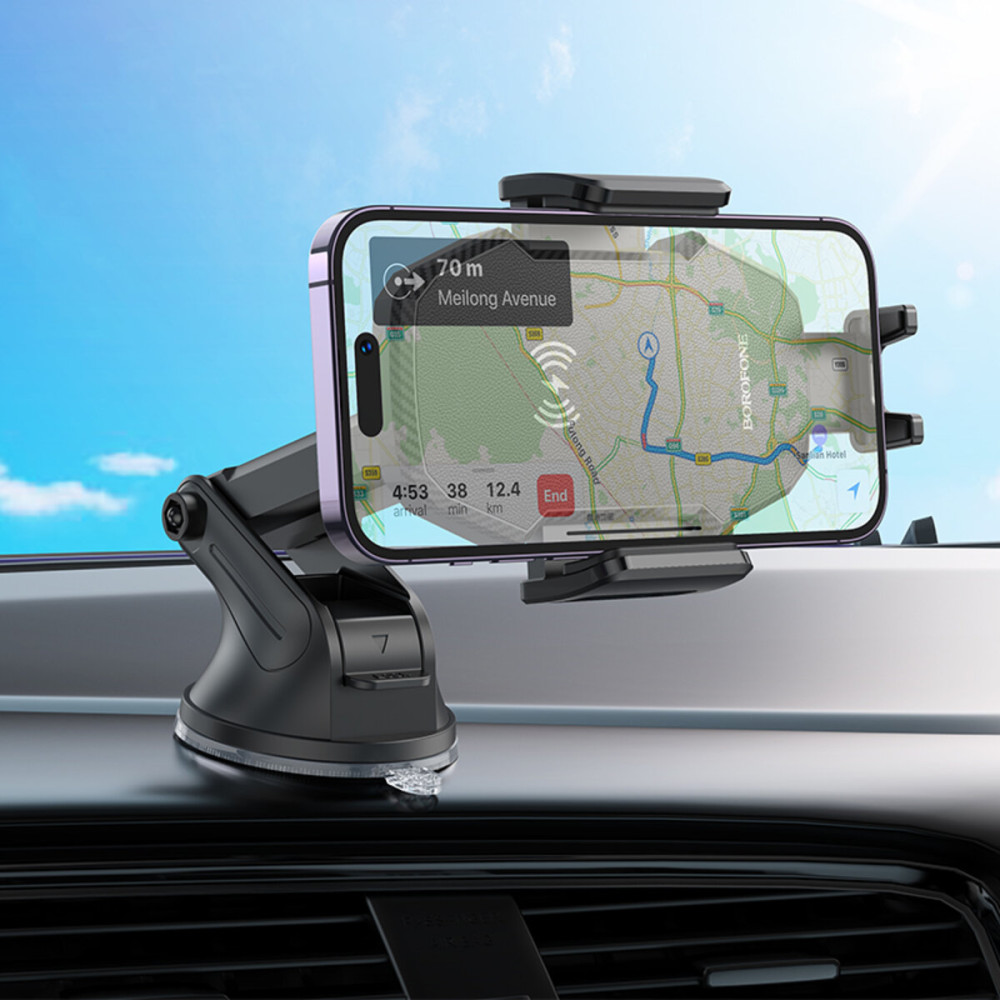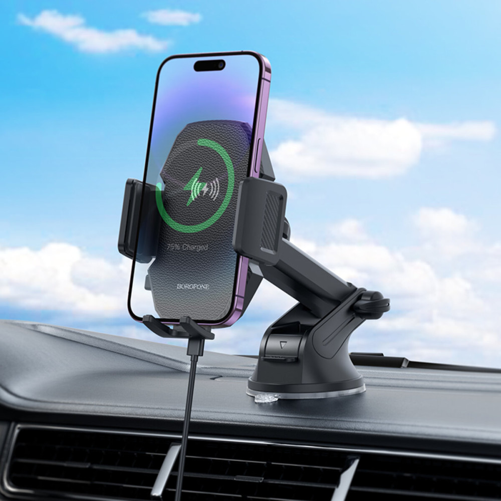 Держатель для телефона с БЗП BOROFONE BH214 — удобный аксессуар для автомобиля. Он помогает удобно отвечать на звонки и пользоваться навигатором смартфона во время вождения.