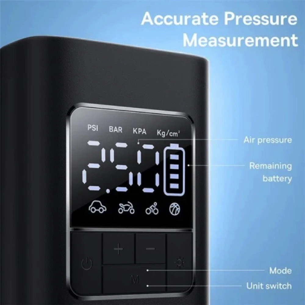 Автомобильный компрессор Baseus Super Mini Pro аккумуляторный 4000mAh 50W оснащён датчиком, который автоматически определяет давление в шинах при подключении и отображает его на легко читаемом дисплее. Правильное давление в шинах — неотъемлемая часть безопасного вождения. Однако мы слишком редко проверяем его уровень. Часто это связано с неудобством поездки в гараж или отсутствием компрессора.