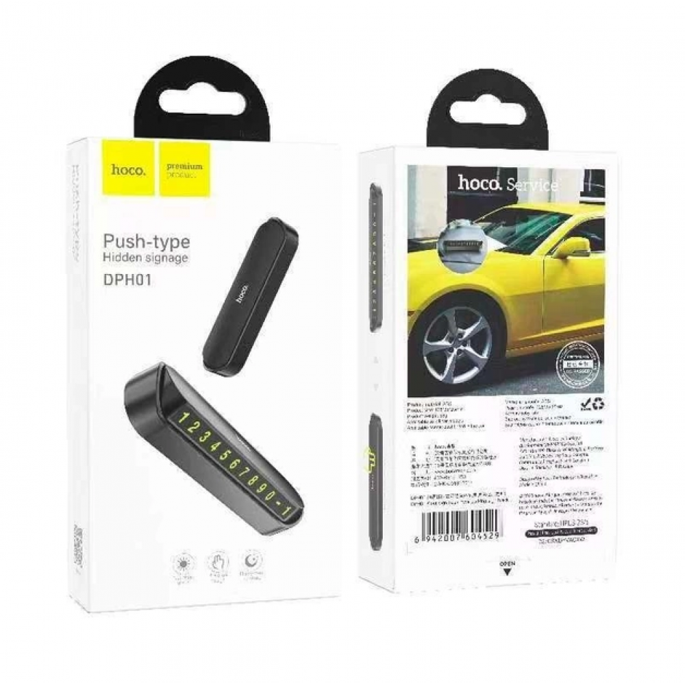 Автотабличка Hoco DPH01 – это не просто парковочная карта, а стильный и практичный аксессуар, который сделает жизнь водителя авто более комфортной и безопасной. Аксессуар предоставит возможность владельцу автомобиля легко оставить свой номер телефона для связи, который будет четко виден через лобовое стекло даже в условиях недостаточной освещенности. Он пригодится во время парковки и в случае возникновения различных экстренных ситуаций. Модель реализована в изысканном дизайне, имеет компактные размеры и практичную конструкцию. Для ее изготовления используется прочный ABS пластик, который выделяется повышенной стойкостью к нагрузкам и перепадам температур. Ее детально продуманная конструкция позволяет всего одним движением скрыть номер и также легко его отобразить. На ее панели вместится до 12 символов, которые надежно фиксируются и не выпадают. Аксессуар имеет надежное клейкое основание для его фиксации на горизонтальную поверхность в необходимом месте на торпедо автомобиля. В комплект к нему входят 8 наборов с цифрами, тире и символом телефона, а также скрепка для их изъятия.