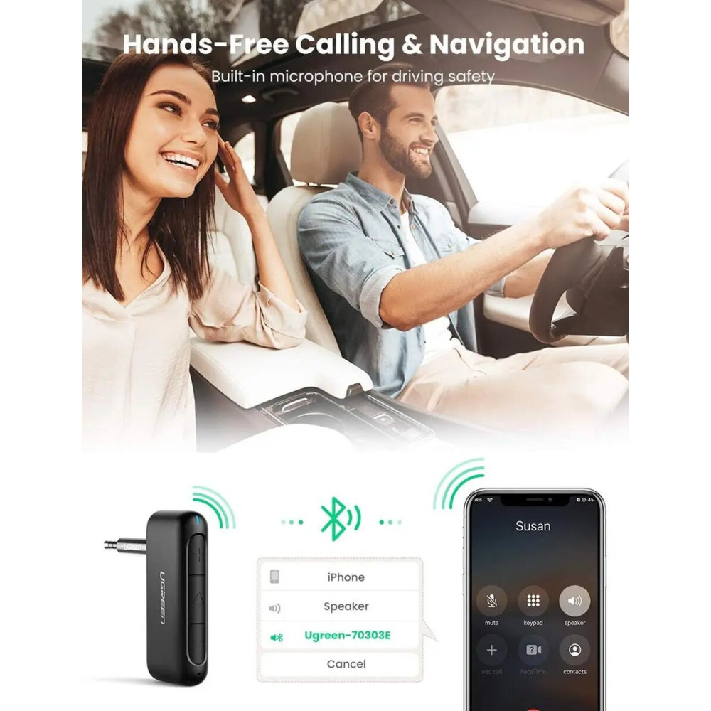 Bluetooth-ресивер UGREEN CM276 Bluetooth 5.0 Receiver Audio Adapter (UGR-70303) – беспроводной адаптер Ugreen. Благодаря этому приемнику Bluetooth можно слушать музыку без проводов в наушниках с мини-разъемом 3,5 мм или использовать его в автомобиле как устройство громкой связи при подключении к порту AUX на автомобильном приемнике.