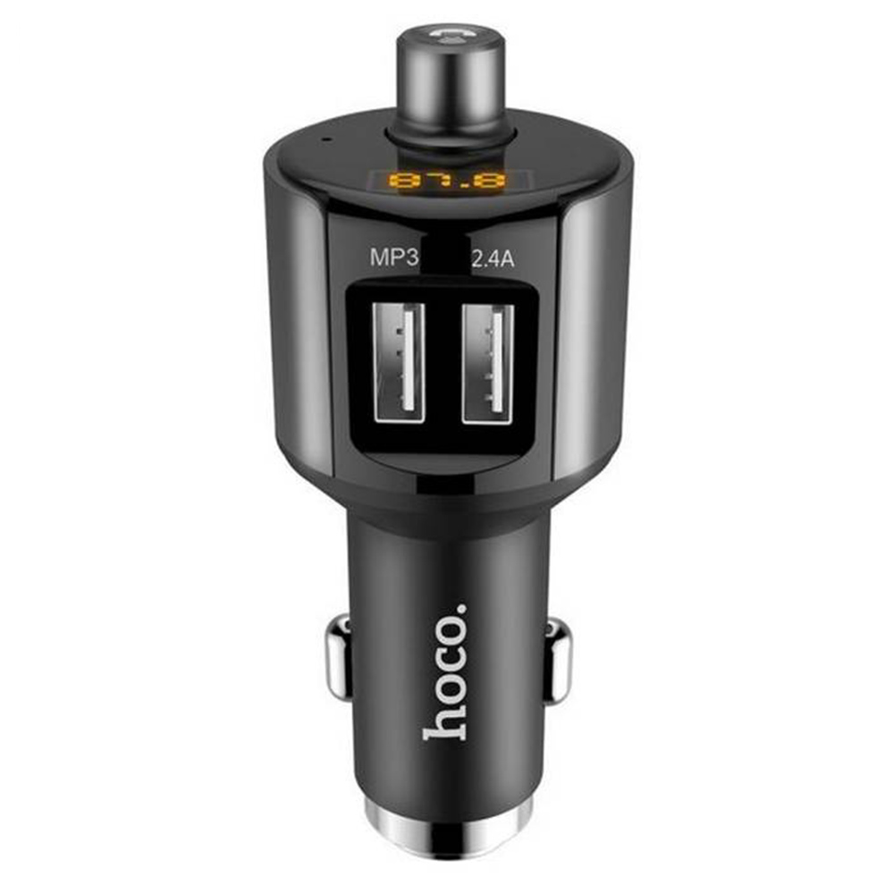 Также Hoco E19 выполняет функцию автомобильного зарядного устройства, он вставляется в прикуриватель и оснащен двумя USB портами через которые соответственно можно заряжать 2 устройства одновременно. Каждый USB порт выдает выходной ток 2.4А. Зарядка оборудована защитой от короткого замыкания, перенапряжения. В FM-модулятор Hoco E19 встроенный микрофон, то есть в устройстве есть функция Hands Free. Корпус изготовлен с крепкого алюминиевого сплава, трансмиттер оборудован LED дисплеем и одной многофункциональной кнопкой управления, которой можно переключать FM-волны, ставить воспроизведение треков на паузу или принимать входящие звонки.