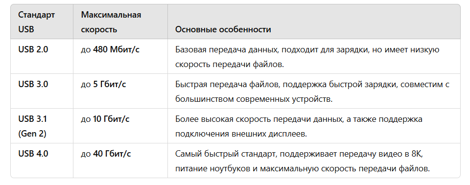 Чем отличаются USB 2.0, USB 3.0, USB 3.1, USB 4.0?