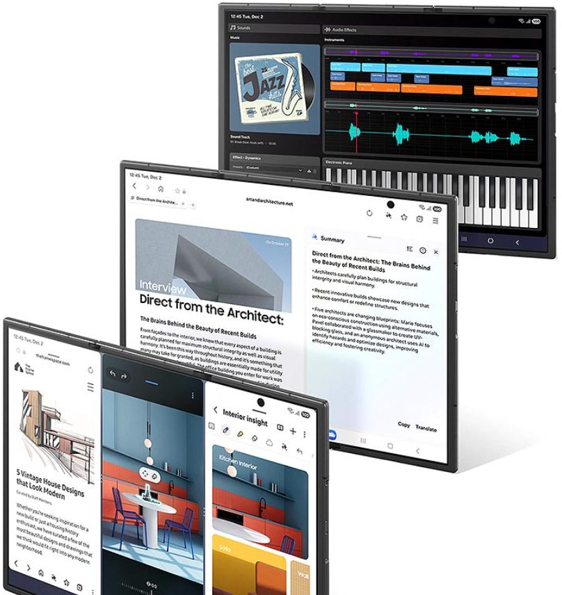 Смартфон после раскладывания превращается в портативный рабочий стол. Он дополнен возможностью решения задач с использованием AI. Чехлы для Samsung TriFold будут, скорее всего, в виде книжек или флипов с функцией подставки.