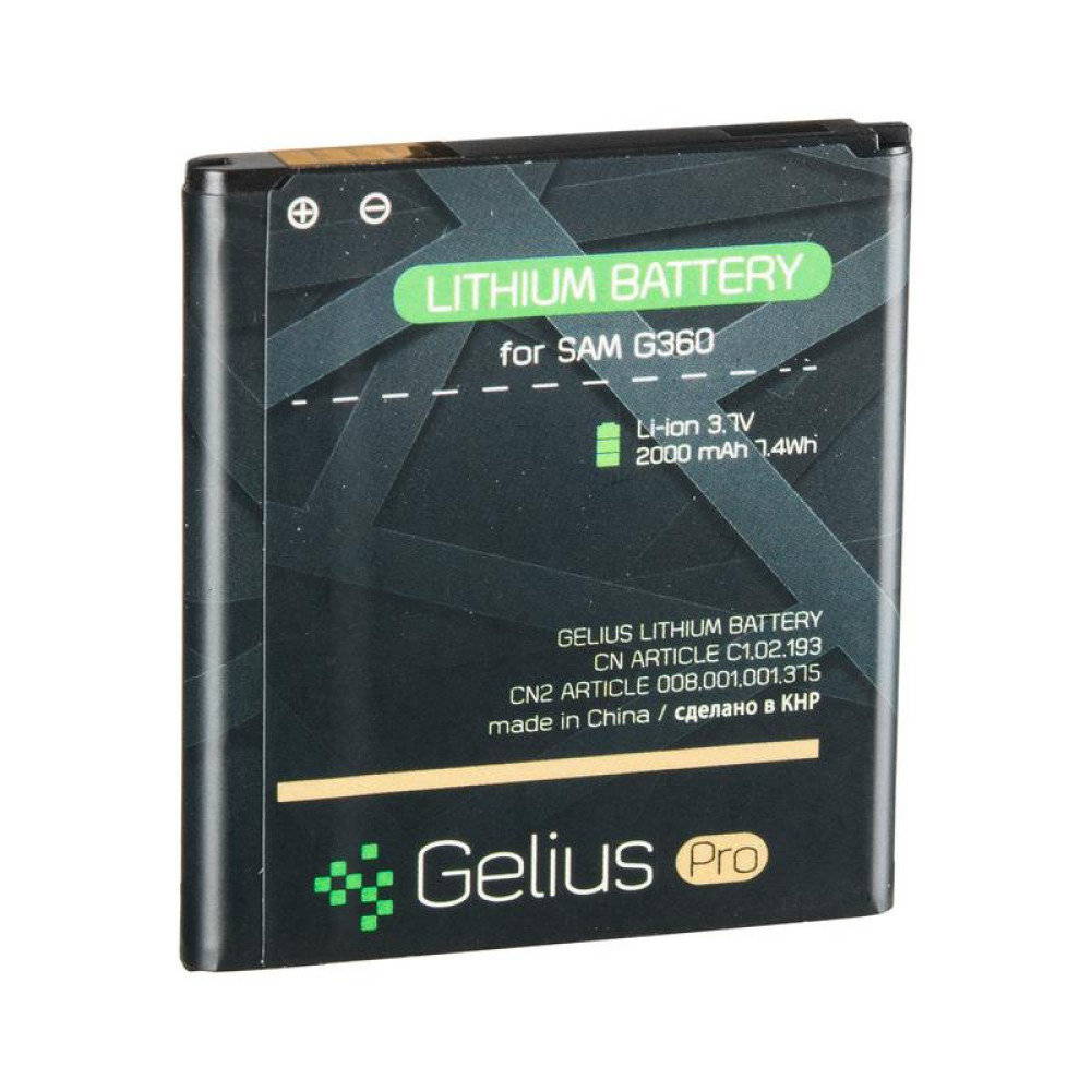 Предлагаем вашему вниманию Gelius Pro для Samsung G360, он является стабильным и надежным в работе. Обеспечит 100% качественное и длительное питание вашего мобильного телефона. EB-BG360CBE - это литий-ионная аккумуляторная батарея емкостью 2000 mAh.
