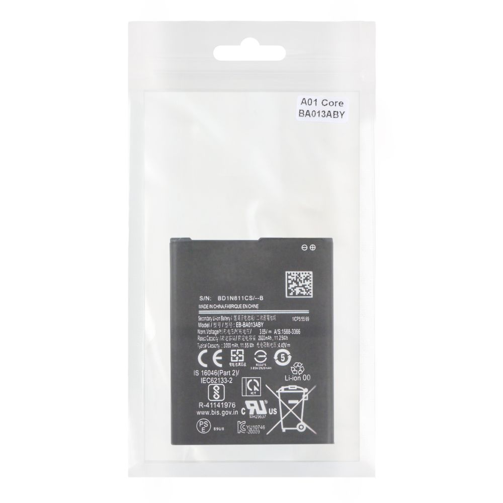 Аккумулятор EB-BA013ABY разработан для смартфонов Samsung Galaxy A01 Core (A013) и M01 Core (M013). Он полностью соответствует заводским стандартам и обеспечивает надёжную и стабильную работу устройства.