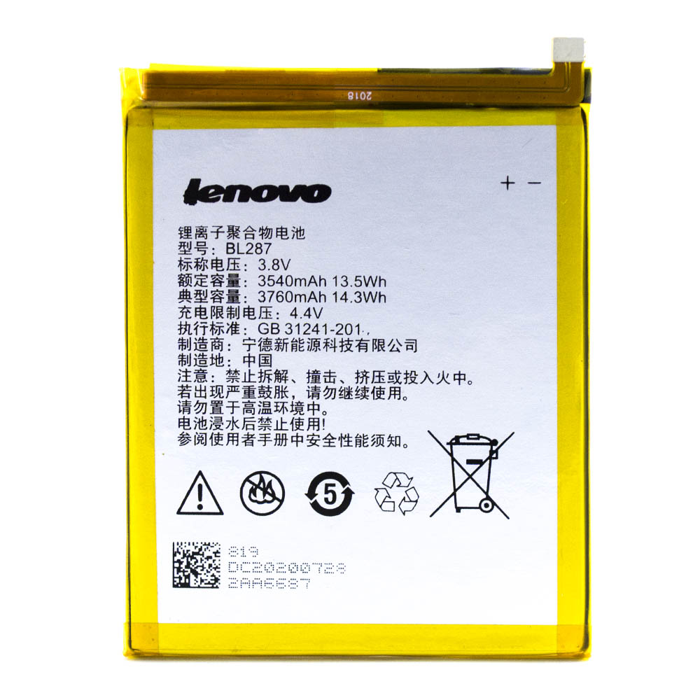 Замена аккумулятора в современных смартфонах в том числе и в Lenovo K5 Note 2018, Lenovo K9 Note несколько усложняется и требует большей ответственности. Это объясняется тем, что аккумулятор BL287 для Lenovo K5 Note 2018, Lenovo K9 Note является не съемным, соответственно самостоятельно заменить его нельзя и нужно обратиться в сервисный центр и очень важно купить качественный новый аккумулятор для Леново К5 Ноут 2018, Леново К9 Ноут, чтобы не пришлось вскоре снова делать замену. Наш интернет-магазин предлагает аккумулятор BL287, емкость батареи составляет 3760mAh. Это перезарядный аккумулятор на который предоставляется шестимесячная гарантия.
