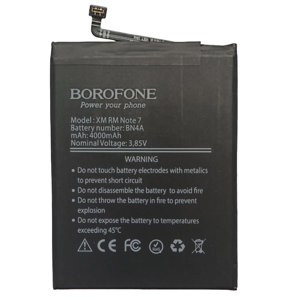 Аккумулятор Borofone BN4A – максимально качественная комплектующая часть, которая обеспечит длительное функционирование для Xiaomi Redmi Note 7. Данный аккумулятор отвечает всем требованиям и действительным характеристикам телефона. Благодаря Borofone BN4A телефон будет заряжаться максимально быстро. Данная батарея необходимо для тех людей, которые много времени производят по телефону, ведь мощность батареи обеспечит максимально-продолжительное пользование гаджетом без подзарядки. Если вы ищете надежное и качественное устройство для телефона по доступной цене — аккумулятор BN4A для Xiaomi Redmi Note 7 4000 mAh идеальный выбор.
