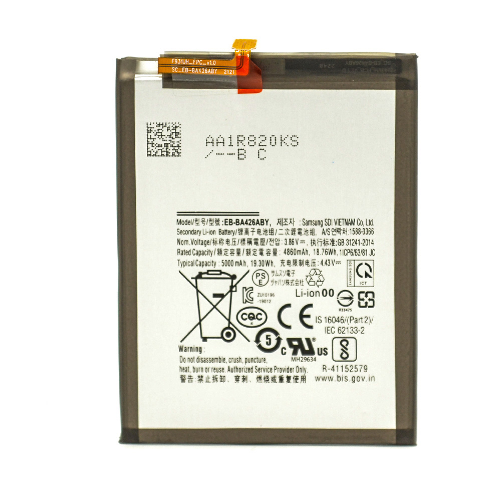 Возникновение потребности купить аккумулятор для Самсунг А32 это только вопрос времени, ведь каждый аккумулятор имеет ограниченный ресурс работы. Если для вас это время настало, то рекомендуем купить батарею EB-BA426ABY для Samsung Galaxy A32 в нашем интернет-магазине, ведь на эту продукцию предоставляется гарантия сроком на 1 год. Аккумулятор имеет емкость 5000mAh, мощность 19,30Wh.