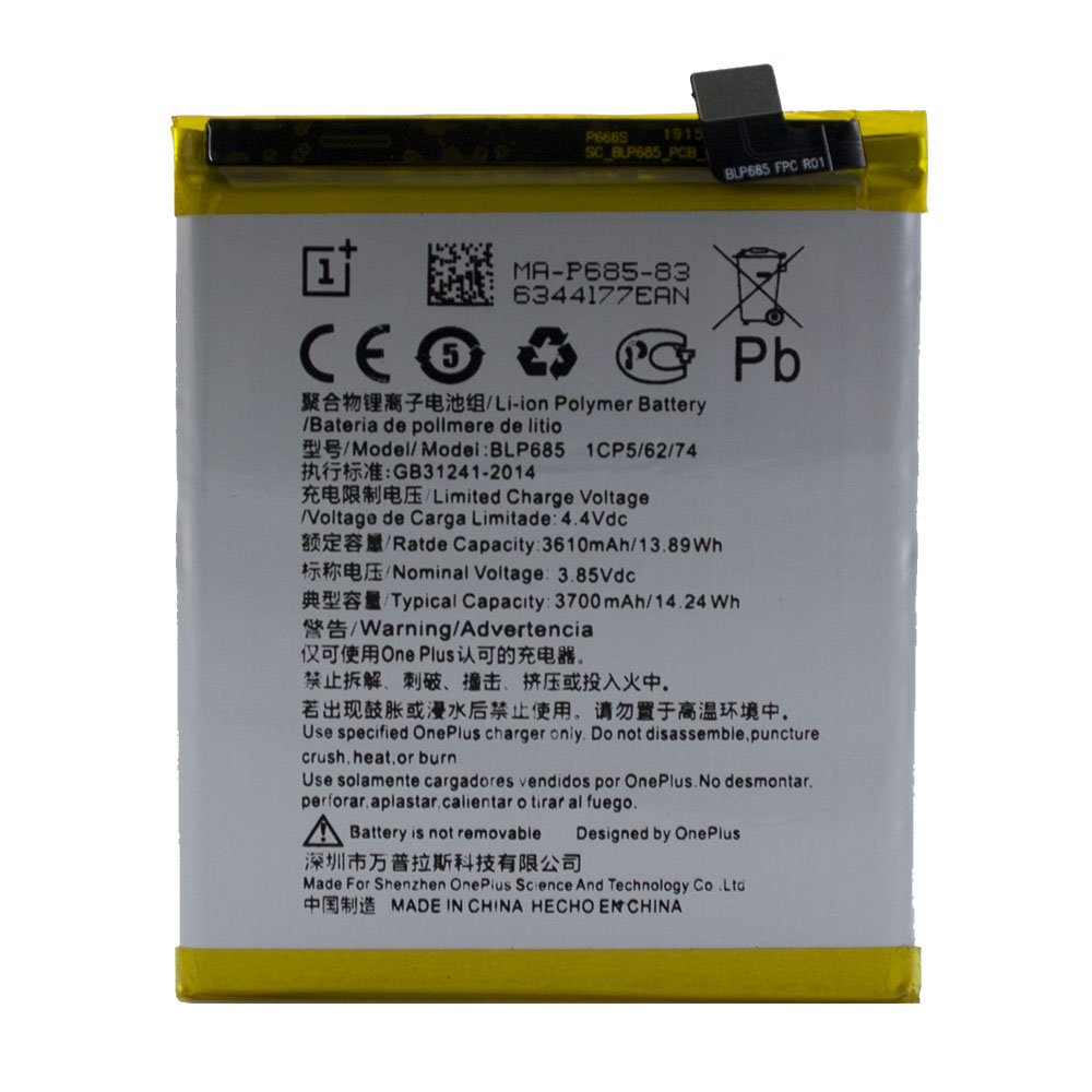 Данный аккумулятор относится к литий-ион полимерного вида, имеет емкость 3700 mAh и мощность 14,24 Wh, поэтому BLP685 без проблем будет служить длительный промежуток времени. Батарея совместима с OnePlus 6Т / 7.