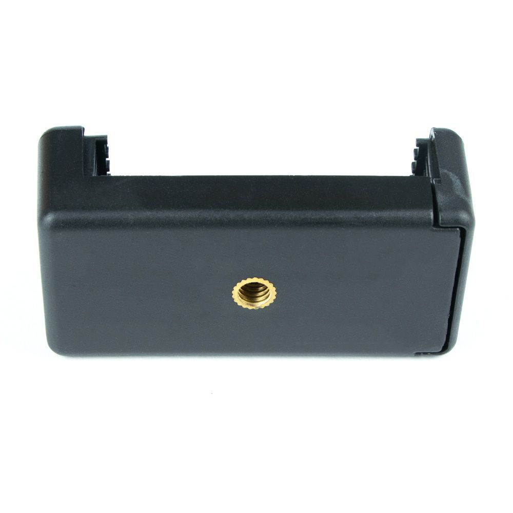Зажим для телефона на штатив двухсторонний - надежное, универсальное устройство, которое поможет закрепить смартфон на штативе, оснащенном стандартным болтовым креплением. Модель обладает практичной конструкцией, длительным сроком службы, ее высокое качество исполнения гарантирует полную безопасность установленному в ней гаджету. Для изготовления корпусных деталей аксессуара используется прочный, стойкий к нагрузкам пластик с приятной на ощупь поверхностью, а внутренние элементы его раздвижного механизма и резьба - из металла.