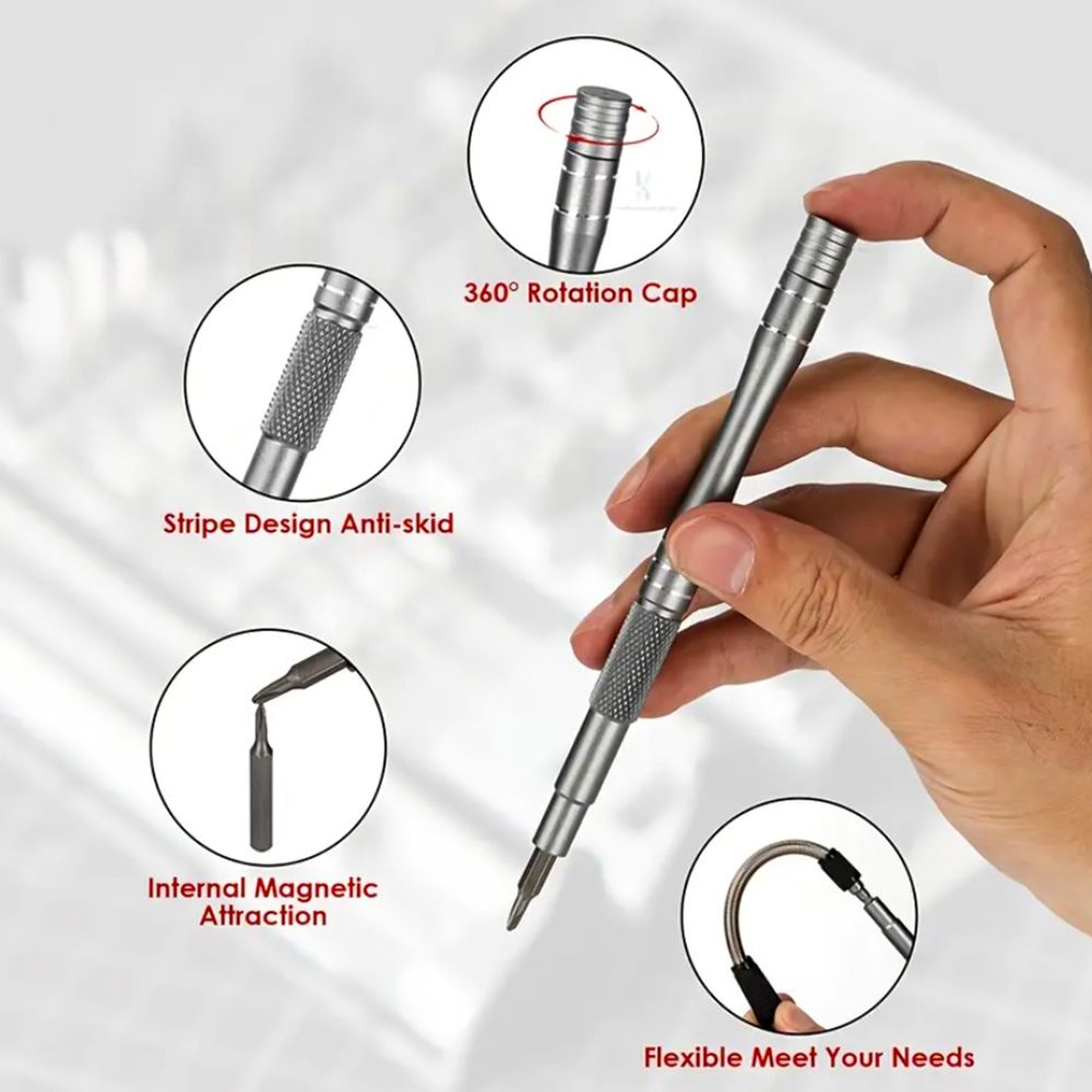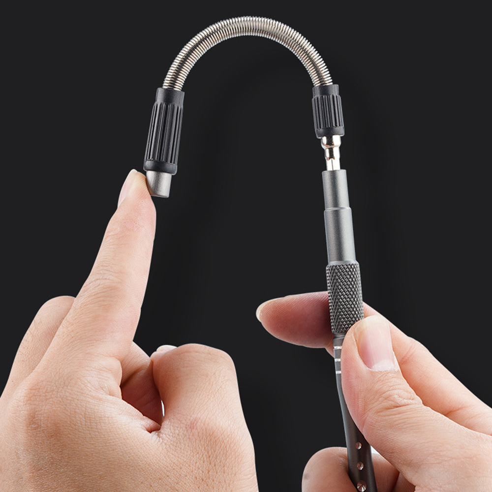 - Гибкий удлинитель (13 см) – позволяет работать в труднодоступных местах, например, при ремонте компьютерных блоков или смартфонов.