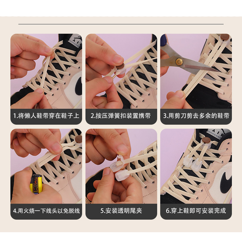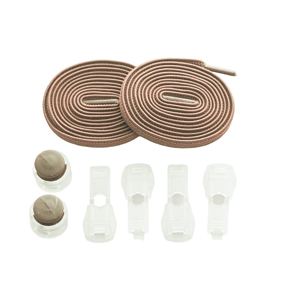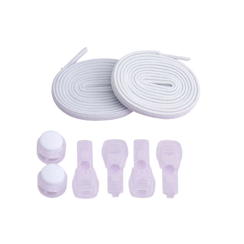 Данные шнурки изготовлены из высококачественных материалов, имеют эластичные свойства и достаточно выносливы к разрывам или протираниям. Кроме них, в комплект входит пара пружинных пряжек, с помощью которых можно быстро и удобно затянуть и зафиксировать шнурки. Еще одной особенностью является наличие двух пар зажимов, закрепляемых на конечностях шнурков, после их обрезки.