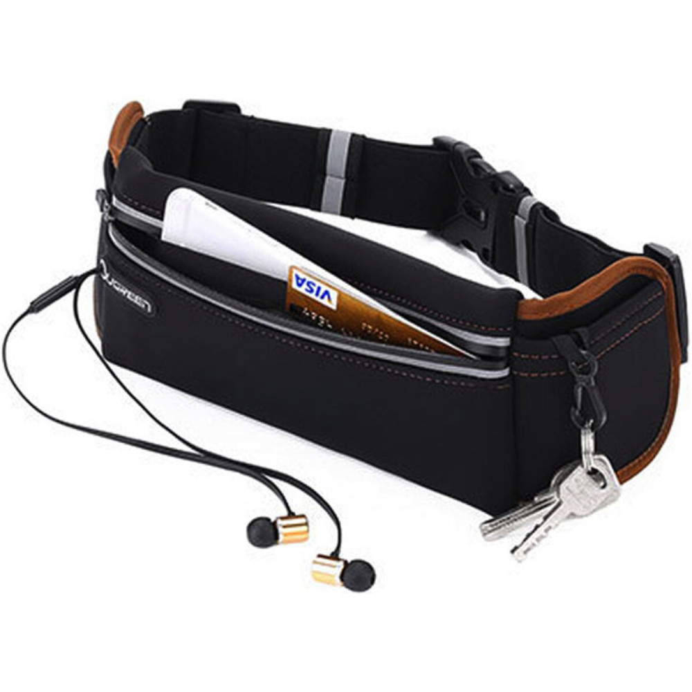 Благодаря удобному ремешку оптимальной ширины сумка идеально сидит на бедрах. Благодаря эластичным вставкам она идеально приспосабливается к форме тела и окружности тела. Внутренняя поверхность сумки изготовлена из приятной на ощупь ткани, которая не натирает кожу. Она оснащена удобными замками с кольцами для ключей, так что вы можете открывать или закрывать ее только одной рукой. Вы можете легко застегнуть его на спине, потому что он оснащен простой пряжкой. Вы можете легко вытащить наушники через отверстие в корпусе. Устройство воспроизведения музыки может находиться внутри, и вы можете легко проложить кабель снаружи.