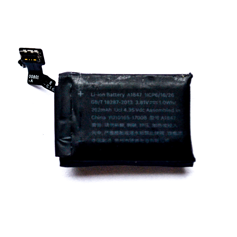 A1847 - это миниатюрная батарея для Apple Watch S3 с емкостью 262 mAh. Данный аккумулятор относится к литий-ионному типу, поэтому быстро восстанавливается и заряжается после полной разрядки гаджета.