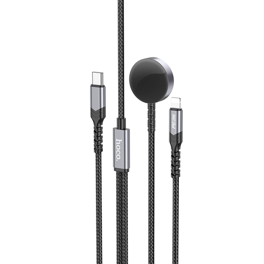 Беспроводное зарядное устройство 2в1 Hoco CW54 для iWatch 2.5W и зарядный кабель для iPhone PD20W 3A 1.2m, Black