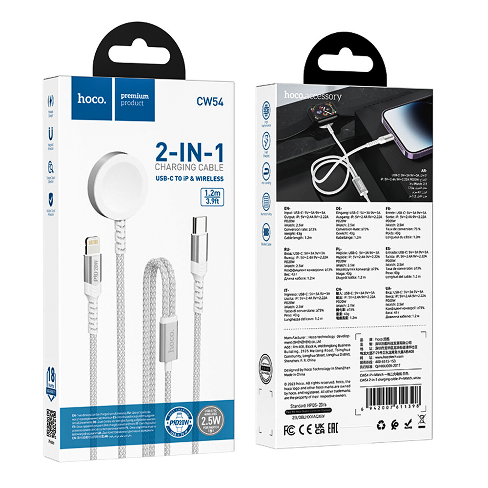 Кабель – зарядка HOCO CW54 2в1 – это беспроводная зарядка для Apple Watch и зарядка для iPhone.