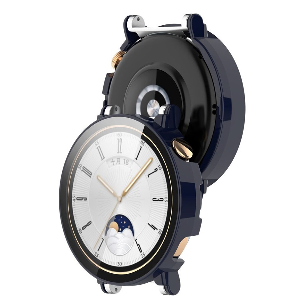 При ежедневном использовании smart часов Huawei Watch GT 4 41mm существует вероятность его повреждения или даже частичной потери привлекательности. Естественно, бывали моменты, когда часы падали или подвергались воздействию внешних факторов. Последствия этого могут быть крайне отрицательными – от царапин и трещин на экране и корпусе или вообще его неисправность. Использование защитного чехла со стеклом в этом случае просто идеальный вариант. Чехол полностью покрывает весь корпус и изгибы, а защитное стекло отлично защищает сенсорный экран.
