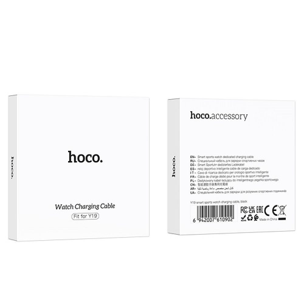 Кабель зарядки для часов Hoco Y19 – это оригинальный, надежный аксессуар, который способен гарантировать стабильный, абсолютно безопасный процесс зарядки. Кабель выполнен в полном соответствии с мультифункциональными смарт часами Hoco Y19. Его использование предотвратит возможные повреждения батареи, вызванные нестабильной работой электросети, и значительно продлит срок ее службы. Корпуса разъемов аксессуара выполнены в практичной форме с усиленной защитой от изломов в местах соединений с кабелем, изготовлены из полиацеталя – высокопрочного полимерного материала. Внешняя оплетка кабеля выполнена из поливинилхлорида (PVC), выделяется эластичностью, повышенной стойкостью к растяжению и разрывам. Входной USB (male) разъем кабеля позволит зарядить часы от повербанка, сетевого или автомобильного зарядного устройства, ноутбука или настольного ПК. Выходной интерфейс оснащён мощными магнитами для надежной фиксации и медными контактами, которые в сочетании с утолщенным медным сердечником кабеля обеспечивают стабильное соединение.