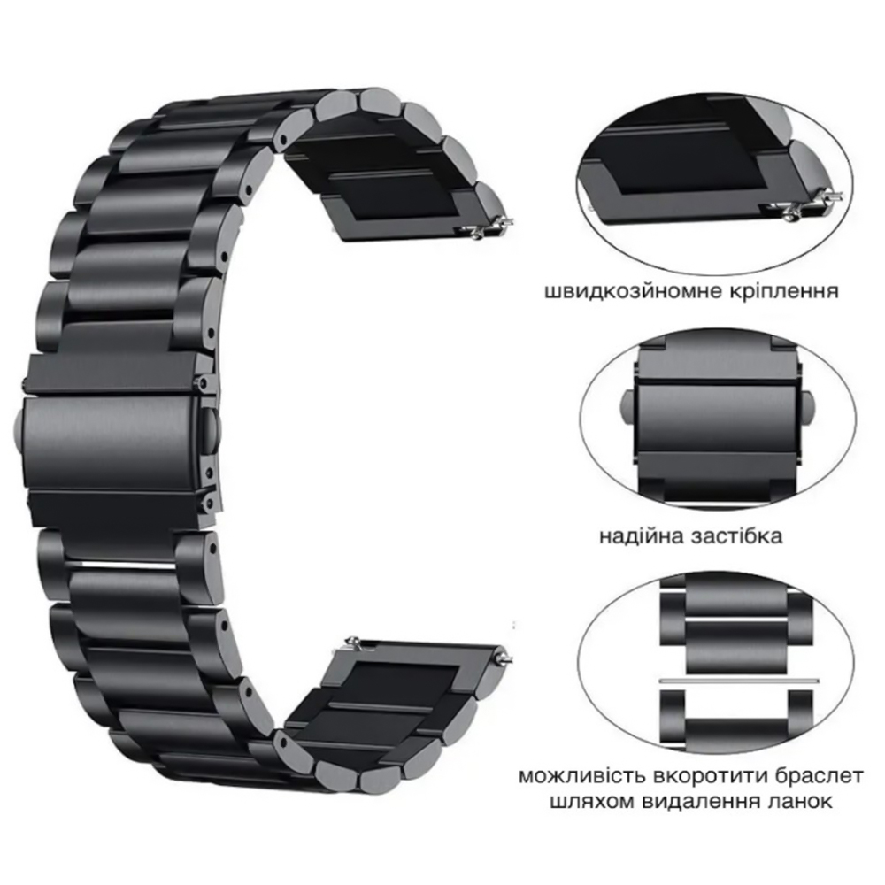 Застежка надежна, ведь открывается только если нажать на кнопки с двух сторон, таким образом, это предотвращает случайное вскрытие. Ремешок имеет универсальную длину, и при необходимости звена можно отцепить для лучшей фиксации.