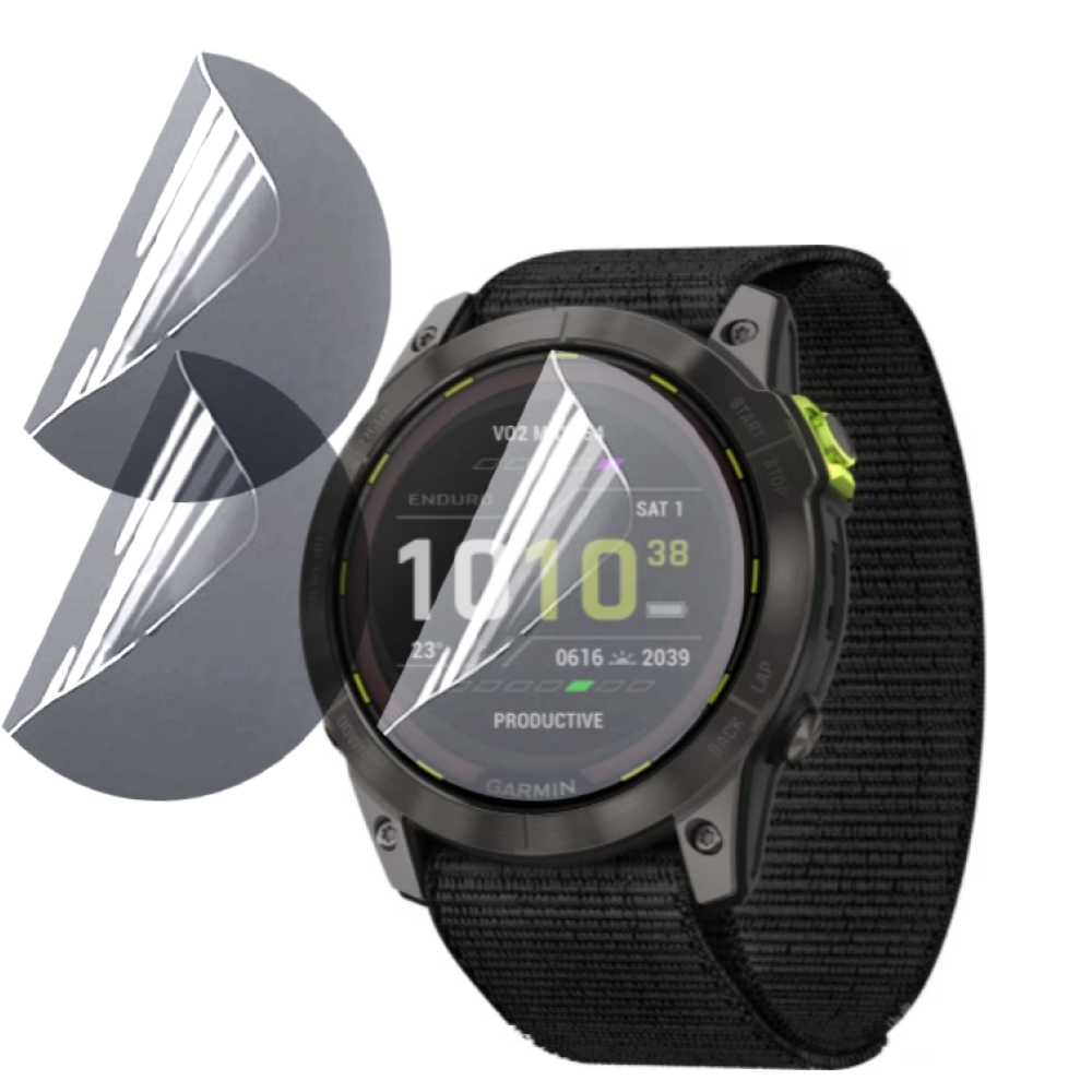 Рекомендуем купить гидрогелевую пленку для экрана вашего Garmin Enduro 2. Покрытие надежно защитит поверхность дисплея от царапин, амортизирует удар, и не испортит качество изображения, а также очень чувствительное.
