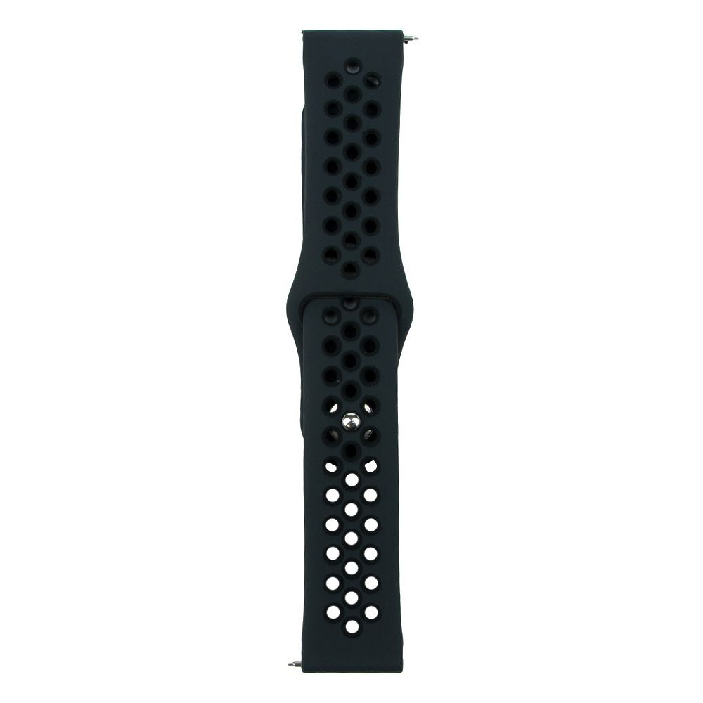 Ремешок для Samsung Galaxy Watch 22mm - практичный, оригинально реализованный аксессуар, который станет отличным выбором для использования на протяжении всего дня и особенно во время занятий спортом. Модель выполнена в стильном, двухцветном дизайне, предлагается в достаточно широком разнообразии, представленном комбинациями как контрастирующих, так и идеально сочетающихся между собой цветов. Для изготовления ремешка используется высококачественный силикон, который позволяет ему плотно облегать запястье и в сочетании с перфорацией по всей длине не вызывать раздражения на коже, позволяя ей свободно дышать. Благодаря данному материалу аксессуар не теряет свою функциональность и привлекательный внешний вид на протяжении длительного срока эксплуатации. Для крепления ремешка на запястье имеется надёжная застежка pin-and-tuck, которая весьма органично смотрится с ремешком и выполнена в одном с ним дизайне. Аксессуар совместим с часами Samsung Galaxy Watch с шириной крепления 22mm и крепится на них быстросъемными шпильками.