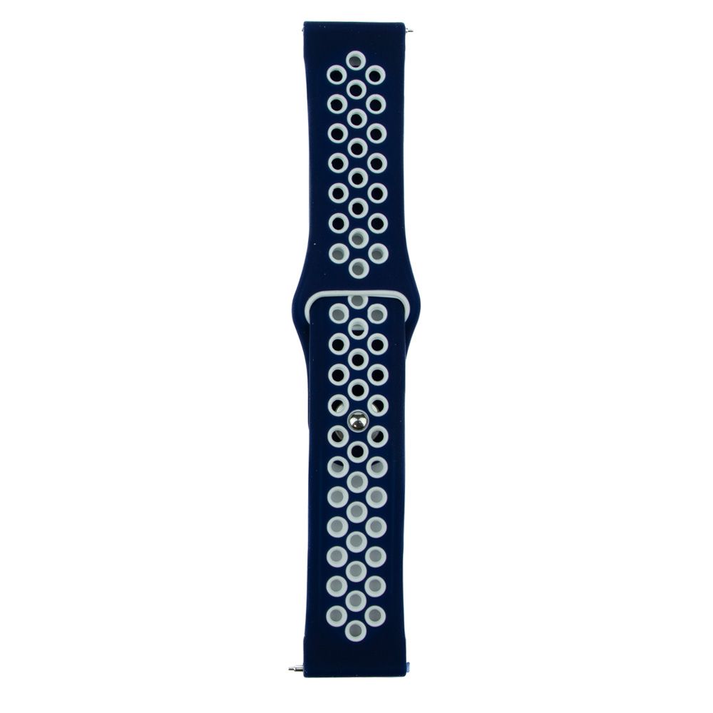 Ремешок для Samsung Galaxy Watch 22mm - практичный, оригинально реализованный аксессуар, который станет отличным выбором для использования на протяжении всего дня и особенно во время занятий спортом. Модель выполнена в стильном, двухцветном дизайне, предлагается в достаточно широком разнообразии, представленном комбинациями как контрастирующих, так и идеально сочетающихся между собой цветов. Для изготовления ремешка используется высококачественный силикон, который позволяет ему плотно облегать запястье и в сочетании с перфорацией по всей длине не вызывать раздражения на коже, позволяя ей свободно дышать. Благодаря данному материалу аксессуар не теряет свою функциональность и привлекательный внешний вид на протяжении длительного срока эксплуатации. Для крепления ремешка на запястье имеется надёжная застежка pin-and-tuck, которая весьма органично смотрится с ремешком и выполнена в одном с ним дизайне. Аксессуар совместим с часами Samsung Galaxy Watch с шириной крепления 22mm и крепится на них быстросъемными шпильками.