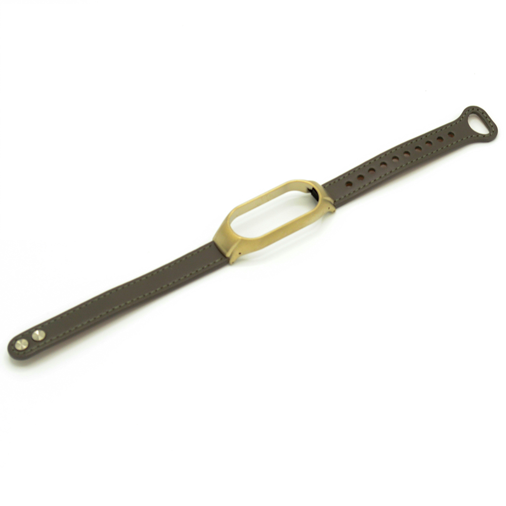 Кожаный ремешок станет элегантным украшением на вашей руке. Материал не вызывает аллергической реакции, ведь создан из качественной искусственной кожи. Не натирает и приятен на ощупь. Для удобной регулировки на руке на ремешке имеется 10 отверстий. Корпус под сам Mi band металлический, поэтому достаточно прочный. Стильный аксессуар будет служить вам долгие годы. Ремешок с двойной пряжкой, купить его можно в 9 - ти разных цветах.