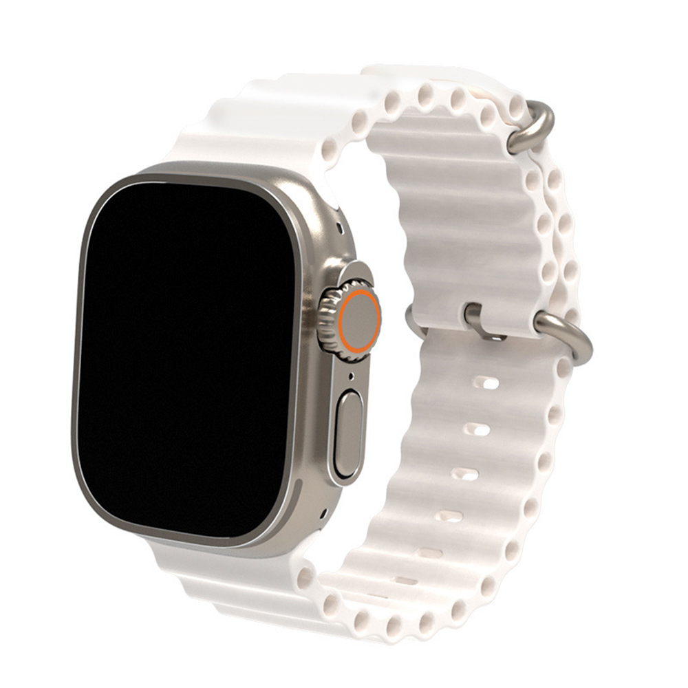 Ocean Band – это стильный и яркий ремешок для вашего Apple Watch. Он удобно и быстро регулируется под запястье с помощью удобной металлической пряжки. Предназначен для часов с шириной крепления 42, 44, 45, 49 мм. Дизайн у него классический, поэтому он подходит к любому стилю одежды, от спортивной до деловой. Материал, из которого изготовлен ремешок не создает дискомфорта при использовании и  есть достаточно приятным и мягким на ощупь. А также Ocean Band является гипоаллергенным, поэтому вполне безопасен для человека.
