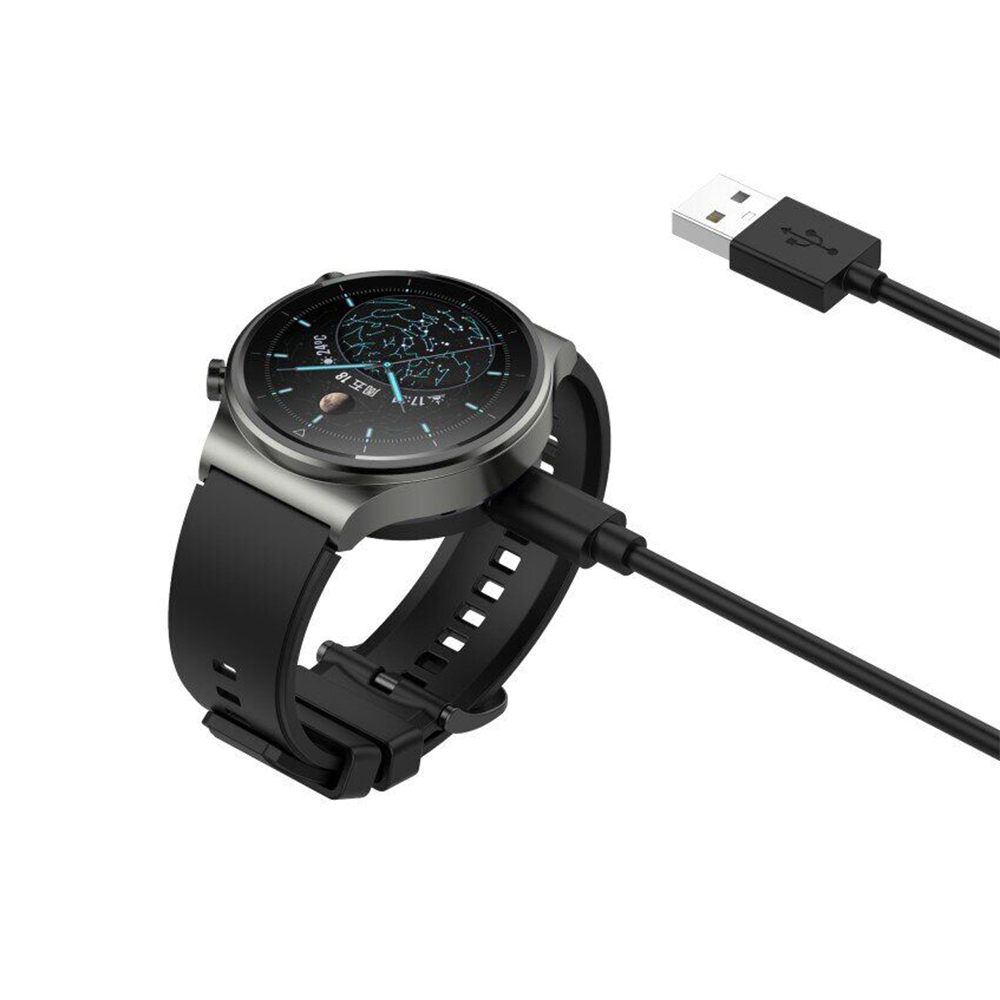Комплект зарядки состоит отдельно из док-станции и кабеля. Док-станция оснащена магнитными коннекторами, хорошо фиксирующими смарт часы на плоскости, а кабель Type-C служит для подсоединения блока зарядки к источнику питания. Его длина составляет 1м.