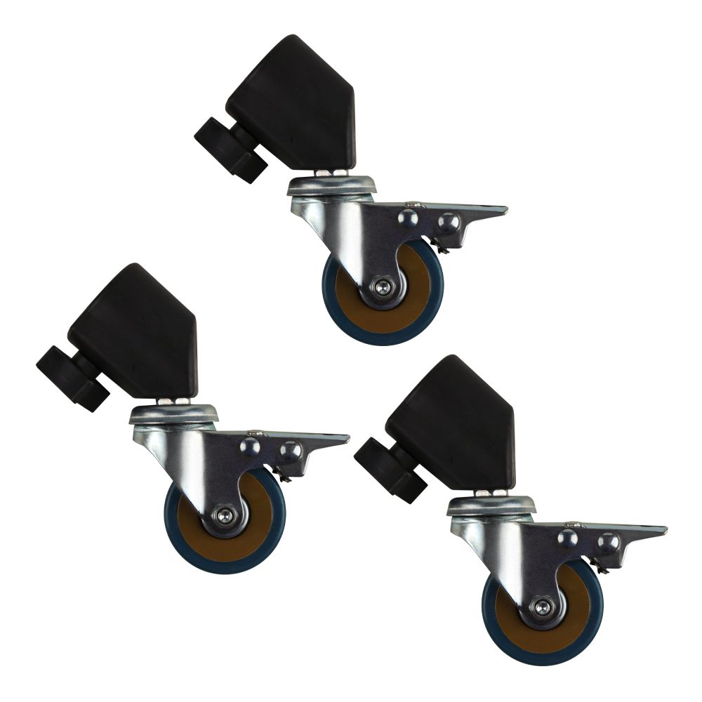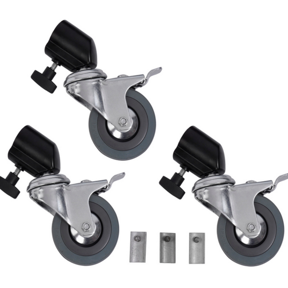 Комплект колёс для фотооборудования 22мм (металл) — надёжное решение для мобильной установки тяжёлых стоек и студийного оборудования с трубами до 22 мм.