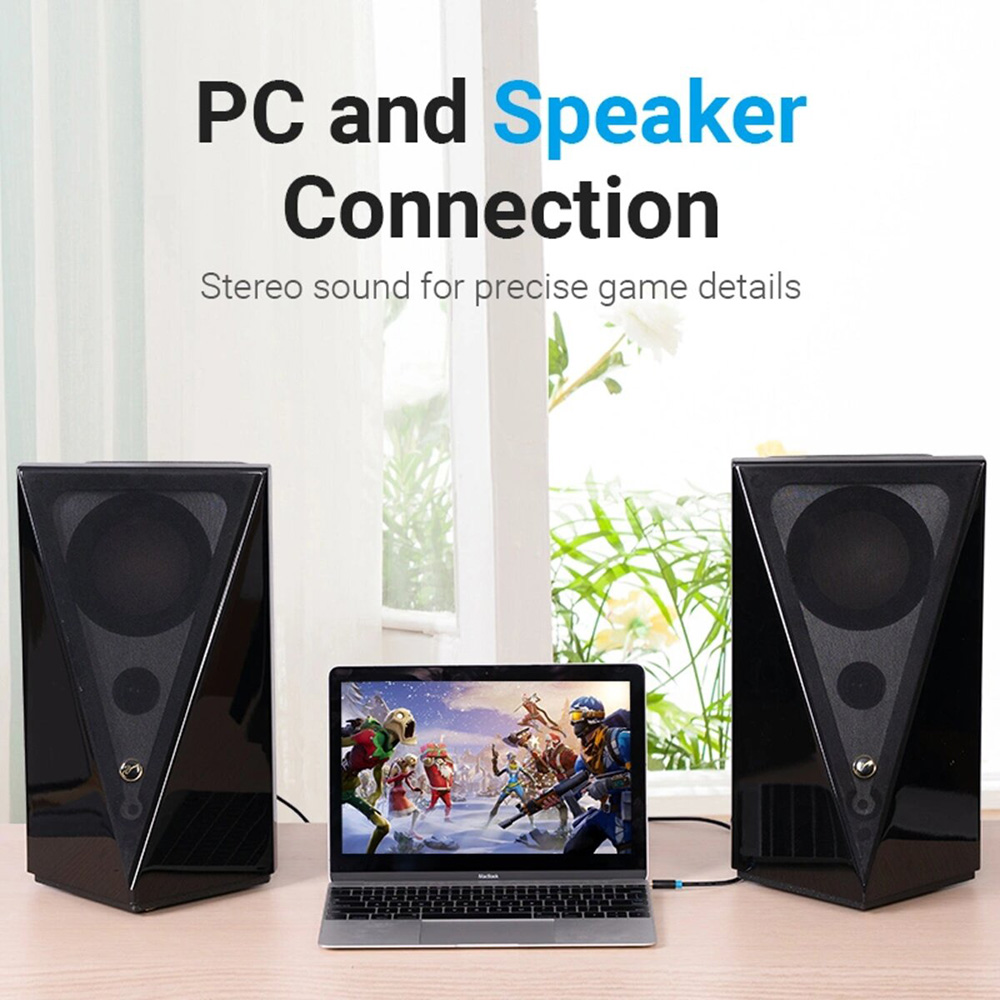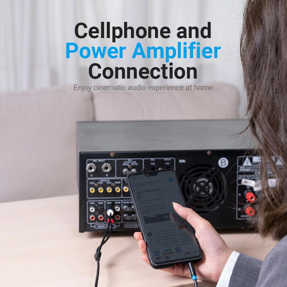 Этот кабель используется для передачи стереосигнала. Один конец имеет разъем 3,5 мм, который подходит для всех стандартных выходных разъемов, таких как наушники и микрофон. Второй конец имеет два RCA разъема, которые подходят к аудиосистемам, усилителям или телевизорам.