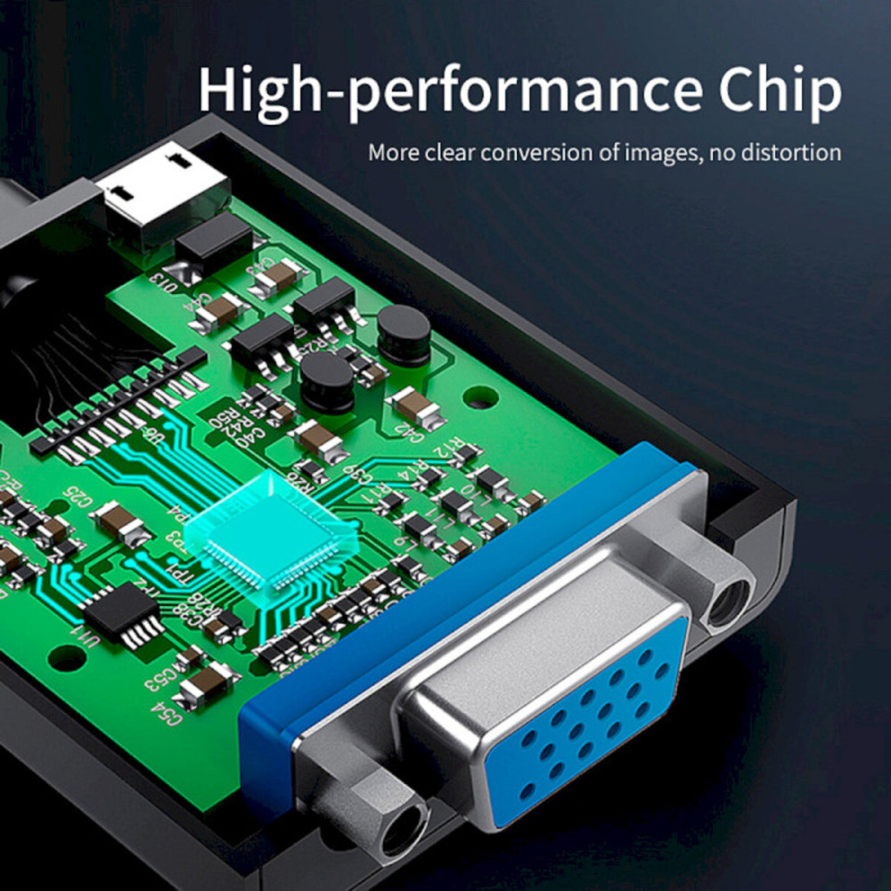 Компактный преобразователь от фирмы Essager, имеющий питание, улучшающее его характеристики, в данном случае расширяет применение: в ТВ-боксах, приставках, компьютерах, PS3 и везде, где не хватает питания от HDMI. Позволяет подключить телевизор или монитор без цифрового входа через аналоговый разъем (VGA), а также позволяет подключить наушники или колонки для вывода звука. Подходит для передачи сигнала HDMI от ноутбука на проектор с входом VGA.