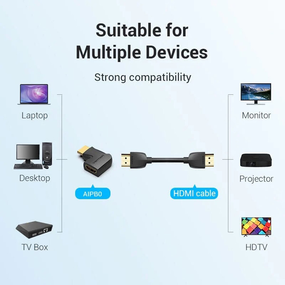 Адаптер Vention HDMI 270 Degree Male to Female Vertical Flat – это высококачественный адаптер, позволяющий соединить устройства с разъемами HDMI Male to Female. Он идеально подходит для подключения компьютеров, ноутбуков, приставок, плееров и других устройств с HDMI-выходом к мониторам, проекторам или другим устройствам. Переходник предназначен для преобразования разъема HDMI M в разъем HDMI F. Г-образная форма углом влево 270° грудусов позволит подключить кабель в труднодоступные участки коммутации устройств и исключить возможность повреждения порта HDMI в процессе эксплуатации.