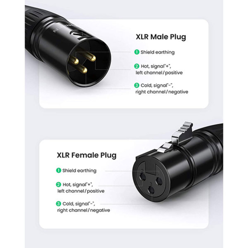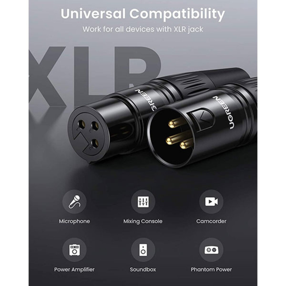 Разъемы UGREEN XLR предназначены для микрофонов или других профессиональных систем записи, микширования и освещения с 3-контактным разъемом XLR для PA, микшера или активных динамиков.