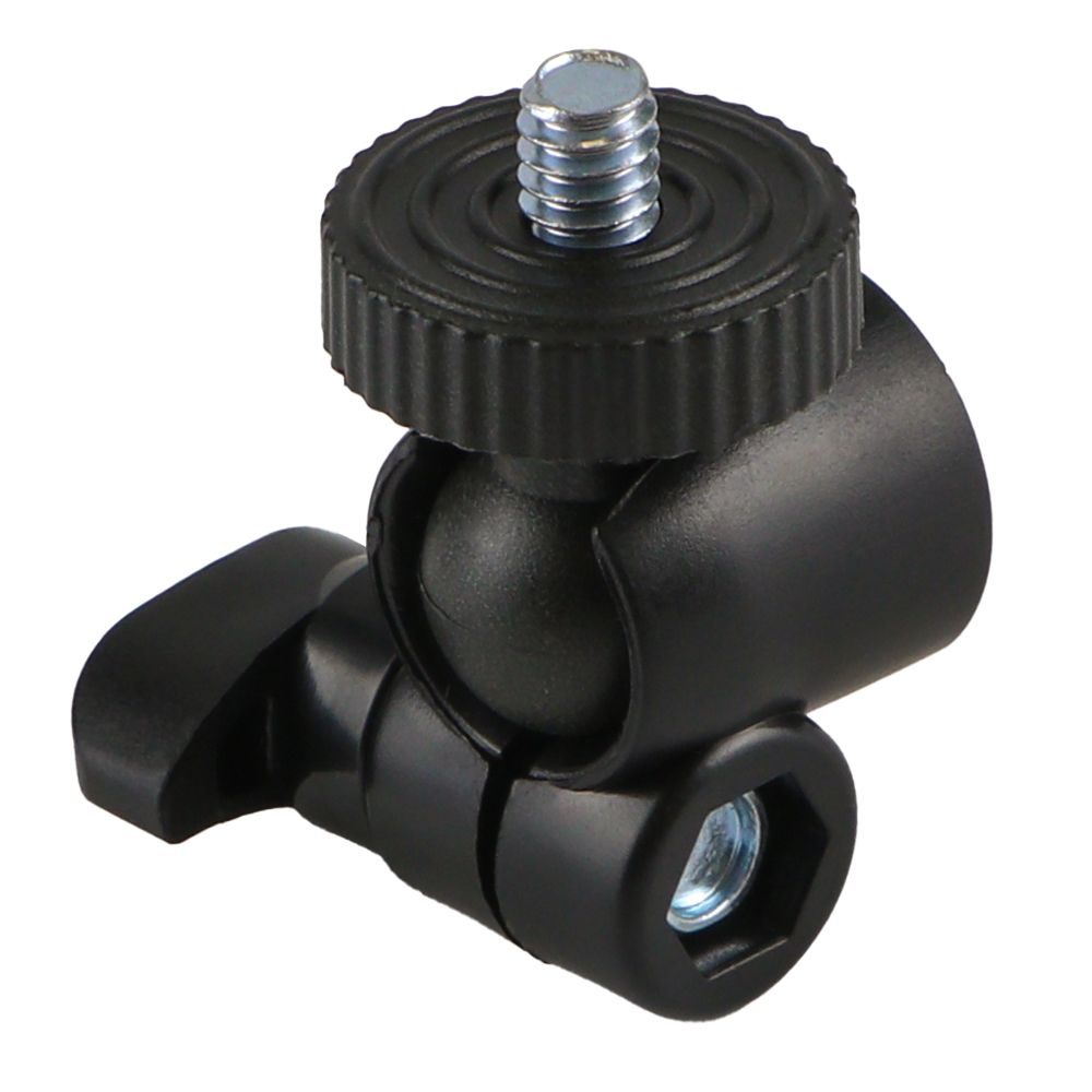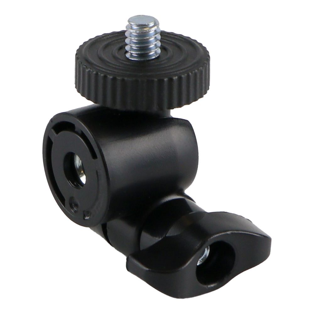 Шаровая голова для штатива – это надежный, практичный аксессуар, который поможет закрепить на штативе необходимое оборудование в самом удобном положении. Он предназначен для штативов со стандартным резьбовым соединением 1/4" и может использоваться для крепления отражателей, ламп, фото- и видеокамер. Его детально продуманная конструкция с шаровым шарниром и дополнительным фиксатором предоставит возможность регулировать наклон и поворот закрепленного оборудования на все 360° вокруг своей оси и надежно зафиксировать нужное положение. Основание аксессуара диаметром 24мм оснащено внутренней резьбой 1/4" для установки на штатив. На его верхней круглой площадке находится болтовое соединение 1/4" для крепления совместимых устройств. Его болтовые крепления изготовлены из металла, а остальные детали – из прочного ABS пластика, который выделяется повышенной стойкостью к нагрузкам, что гарантирует безопасность и длительный срок службы.