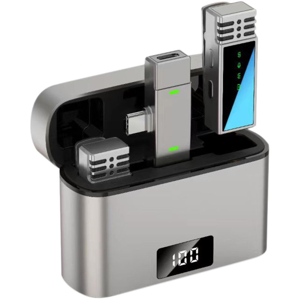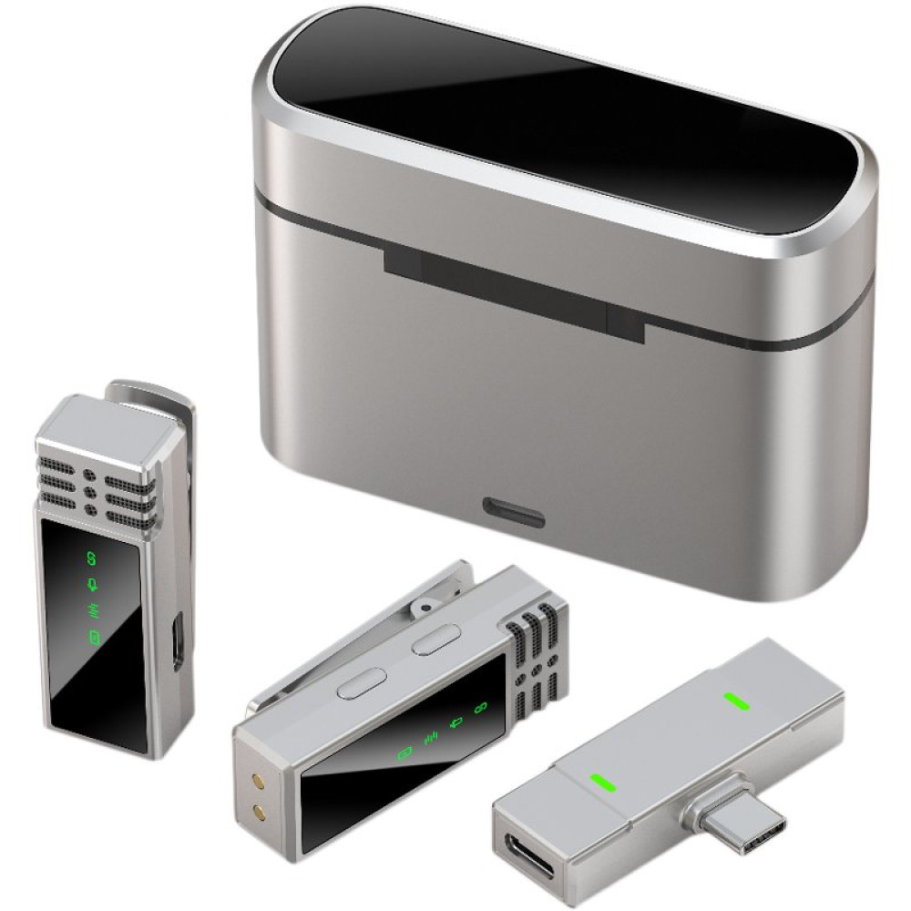 Устройство оснащено цифровым дисплеем как на микрофонах, так и на зарядном кейсе, что позволяет легко отслеживать уровень заряда и статус подключения. Компактный и стильный дизайн делает этот микрофон не только функциональным, но удобным в использовании.