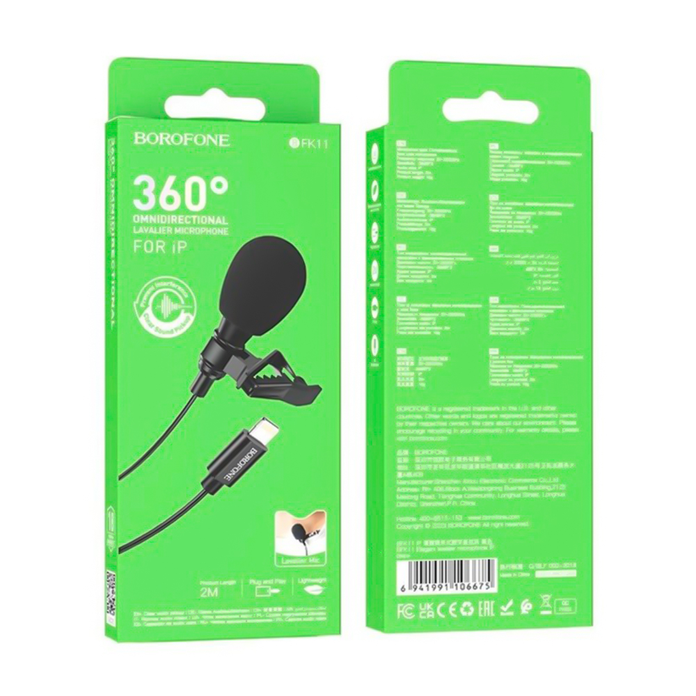 Персональный микрофон компактен, незаметен, но необходима вещь для публичных выступлений, во время проведения вебинаров, записей интервью. Благодаря зажиму микрофон можно зафиксировать на одежде. Разъем Lightning является популярным среди гаджетов, поэтому Borofone BFK11 можно подключить к телефону, планшету, ноутбуку.