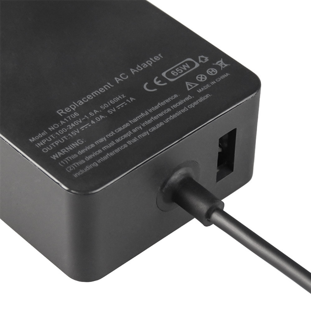 Сетевой адаптер питания A1706 мощностью 65 Вт предназначен для стабильной и безопасной зарядки ноутбуков и планшетов серии Microsoft Surface. Это надежная замена оригинального зарядного устройства, полностью соответствующая заводским техническим требованиям. Адаптер поддерживает широкий диапазон входного напряжения 100–240 В, что делает его удобным для использования как дома, так и в поездках. Основной выход обеспечивает 15 В / 4.0 А, необходимые для полноценного питания устройства, а дополнительный USB-порт 5 В / 1 А позволяет одновременно заряжать смартфон, наушники или другие гаджеты.