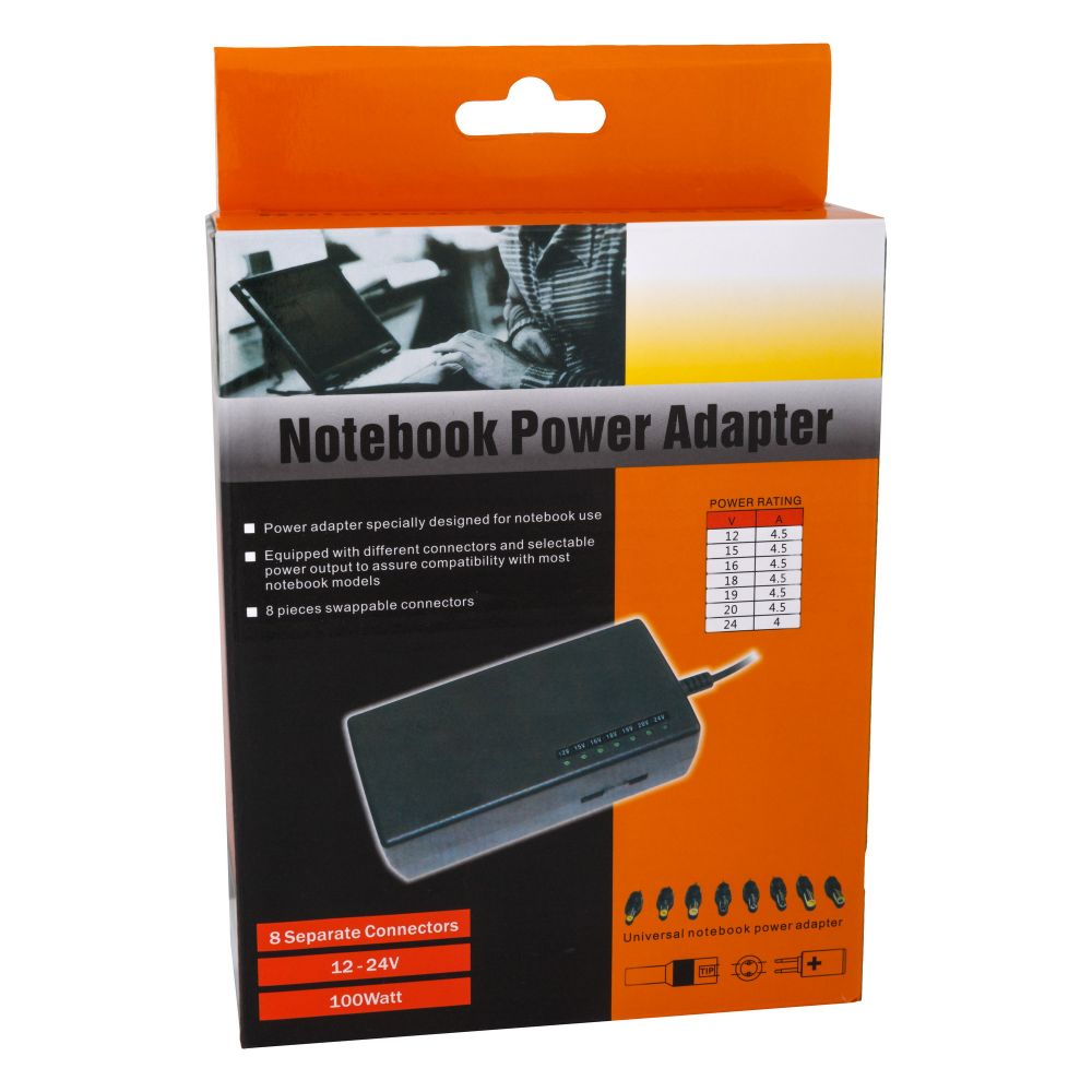 Универсальное зарядное устройство для ноутбука 100w 11Pin - превосходное решение для зарядки портативных компьютеров. Универсальность данной модели позволяет использовать ее с огромным количеством современных ноутбуков различных производителей. Устройство имеет встроенный предохранитель, гарантирующий безопасность. Светодиодные индикаторы помогут контролировать работу зарядки. Сила тока составляет 4,5 A, мощность - 100 W, выходное напряжение - 12-24 V. Корпус аксессуара изготовлен из высококачественного пластика, небольшие размеры и вес устройства позволяют с комфортом носить его вместе с ноутбуком. Съемный надежный кабель питания с европейской вилкой оснащен разъёмом C13 и подключается к соответствующему ему разъему C14 на зарядке. Длина кабеля - 1 м. В комплект входит набор из восьми, наиболее распространенных, разъемов. Планка на которой они зафиксированы предотвратит их потерю.