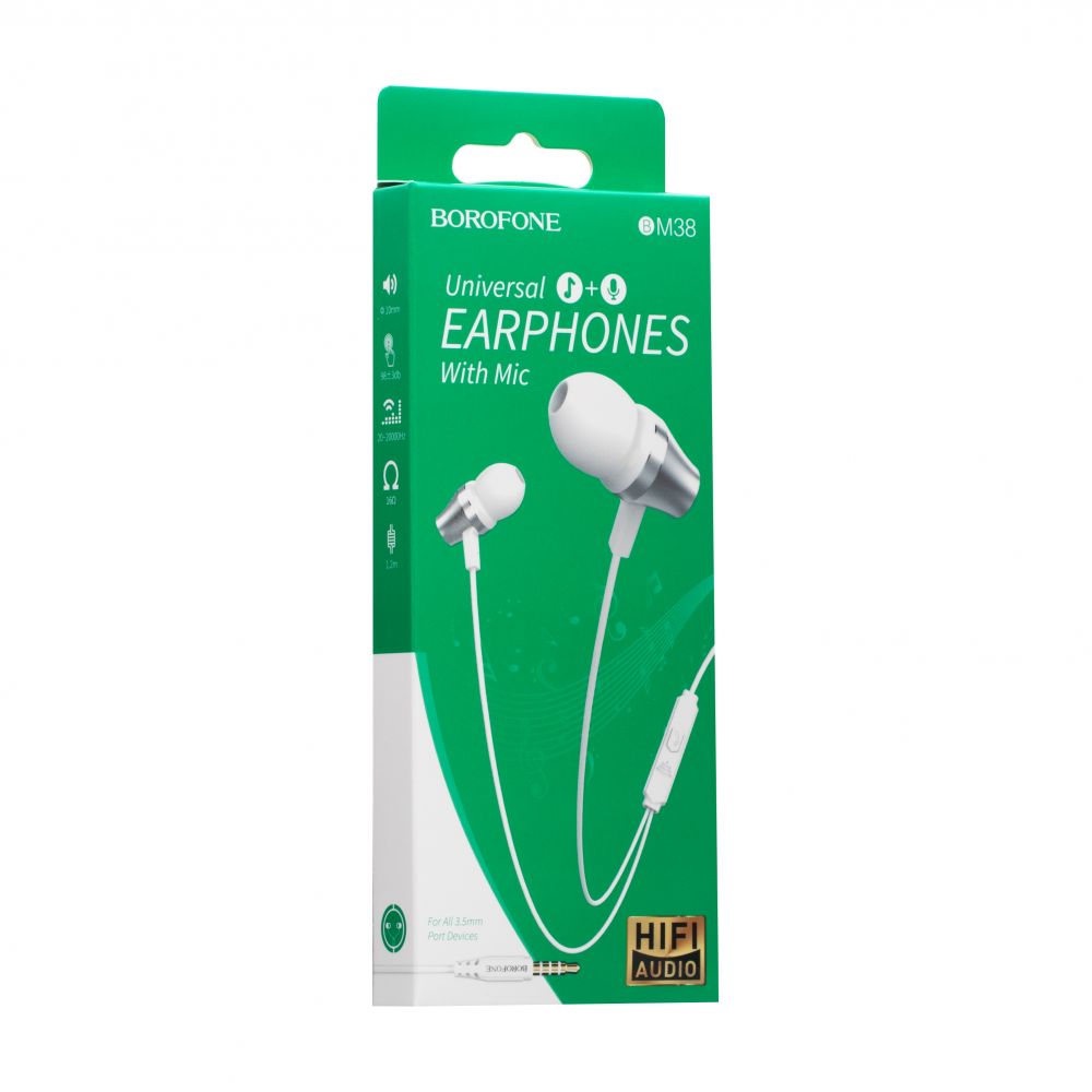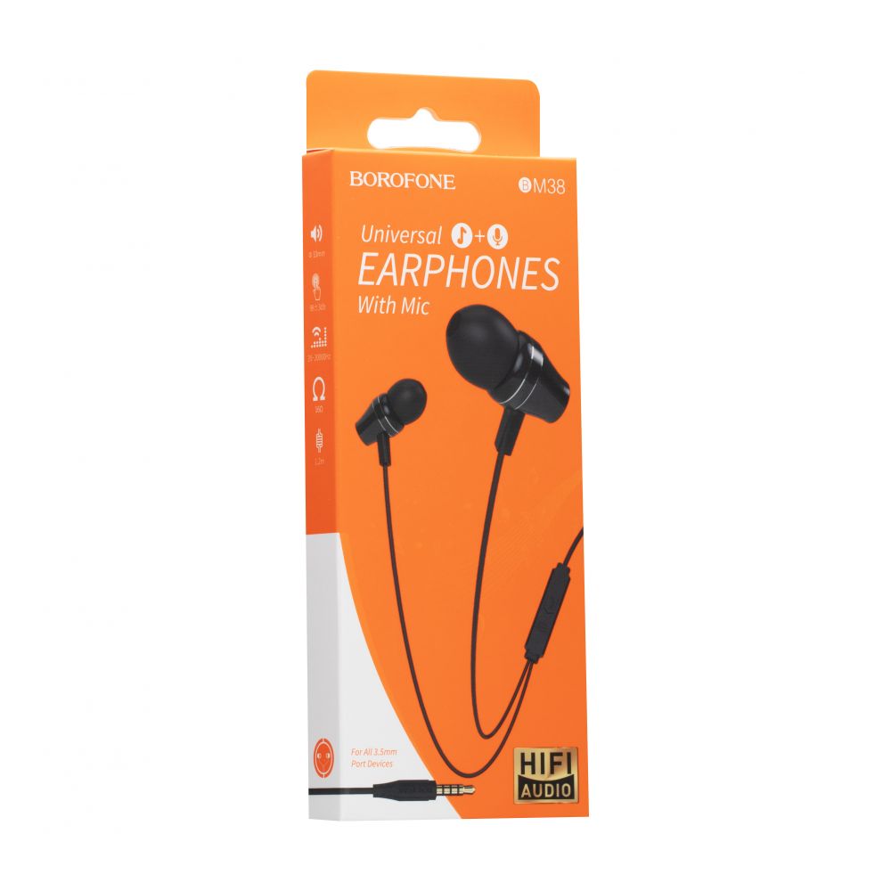 Вакуумные наушники Borofone BM38 - отличный выбор для тех, кто ценит высокое качество звука. Дизайн аксессуара представлен несколькими расцветками. Модель выделяется реалистичной передачей низких частот. Упаковка устройства выполнена в современном дизайне, отличный вариант для витрины. Ушные элементы реализованы в удобной и оригинальной форме, изготовлены из надежного сочетания пластика и металла. Гарнитура имеет эргономичную посадку и подарит своему владельцу незабываемые ощущения от прослушивания любимой музыки. В комплект входят силиконовые амбушюры разного размера, что делает наушники удобными для любого пользователя. В кабель встроен отличный микрофон и кнопка приема вызова. Подключается, данный аксессуар, ко всем типам современной аудиотехники, имеющей разъем mini-jack 3,5 мм. Качественный высокоэластичный кабель с эмалированным проводом имеет длину 1.2 м. Будьте в ритме бренда Borofone и сохраните лучшие впечатления от эксплуатации наушников.