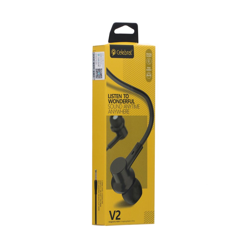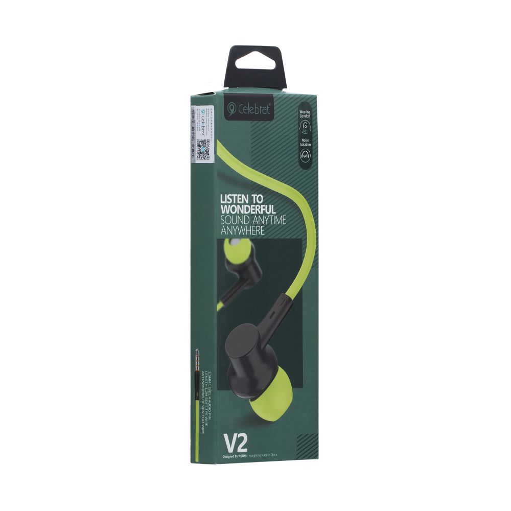 Вакуумные наушники Celebrat V2 это идеальное сочетания звука, эргономичности и цены. Аксессуар представлен в широкой цветовой гамме. Данная модель выполнена в аккуратном дизайне, в наушниках есть микрофон с отличной передачей речи и кнопка приема вызова, можно легко переключатся между прослушиванием музыки и звонками. Выделяются воспроизведением низких частот. Корпус ушных элементов выполнен из надежного и прочного пластика с креативной формой. Устройство имеет эргономичную посадку и подарит своему владельцу незабываемые ощущения от прослушивания любимой музыки. Аксессуар имеет стандартный разъем mini-jack 3,5 мм. Плоский вариант исполнения кабеля усиливает его прочность и надежность в сравнении с другими вариантами оплетки. В комплекте сменная амбушюра.