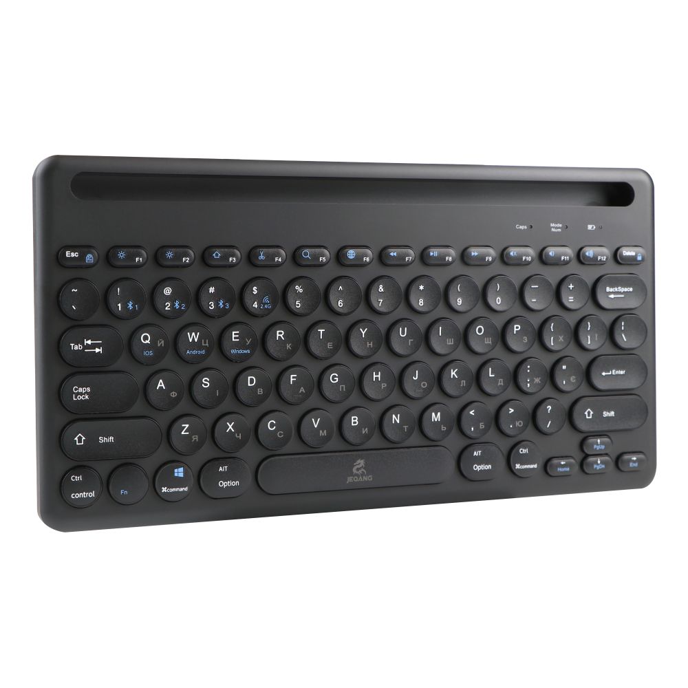 Беспроводная клавиатура JEQANG JB-330 — это тонкое и лёгкое устройство, разработанное с использованием передовых технологий для максимально комфортной и эффективной повседневной эксплуатации. Она станет отличным дополнением к настольному ПК или ноутбуку, может подключаться к планшету, смартфону или смарт ТВ. Преимущества и основные характеристики беспроводной клавиатуры JEQANG JB-330: • Стильный, изысканный дизайн — лаконично дополнит рабочее пространство. • Компактный форм-фактор (78 клавиш) — не займёт много места на столе, с лёгкостью поместится в рюкзаке. • Корпус из надёжной комбинации алюминиевого сплава и ABS пластика. • Качественные кейкапы с чётко нанесёнными символами. • Практичные, износостойкие переключатели типа «ножницы» с необычайно тихим, коротким ходом. • Модуль Bluetooth V5.0 для беспроводного подключения к трём устройствам. • Функциональные кнопки для управления мультимедиа и быстрого переключения между подключёнными устройствами. • LED индикаторы для контроля питания, процесса зарядки, активности соединения и функции «Caps». • Кнопки включения и настройки сопряжения. • Ёмкий встроенный аккумулятор — непрерывная работа на протяжении нескольких дней. • Современный разъём Type-C для зарядки с помощью комплектного USB-кабеля. • Время зарядки: от 0 до 100% за 3 часа. • Совместимость с iOS, Windows и Android. Беспроводная клавиатура JEQANG JB-330 идеально подойдёт для выполнения повседневных задач дома, в офисе и даже во время поездок.