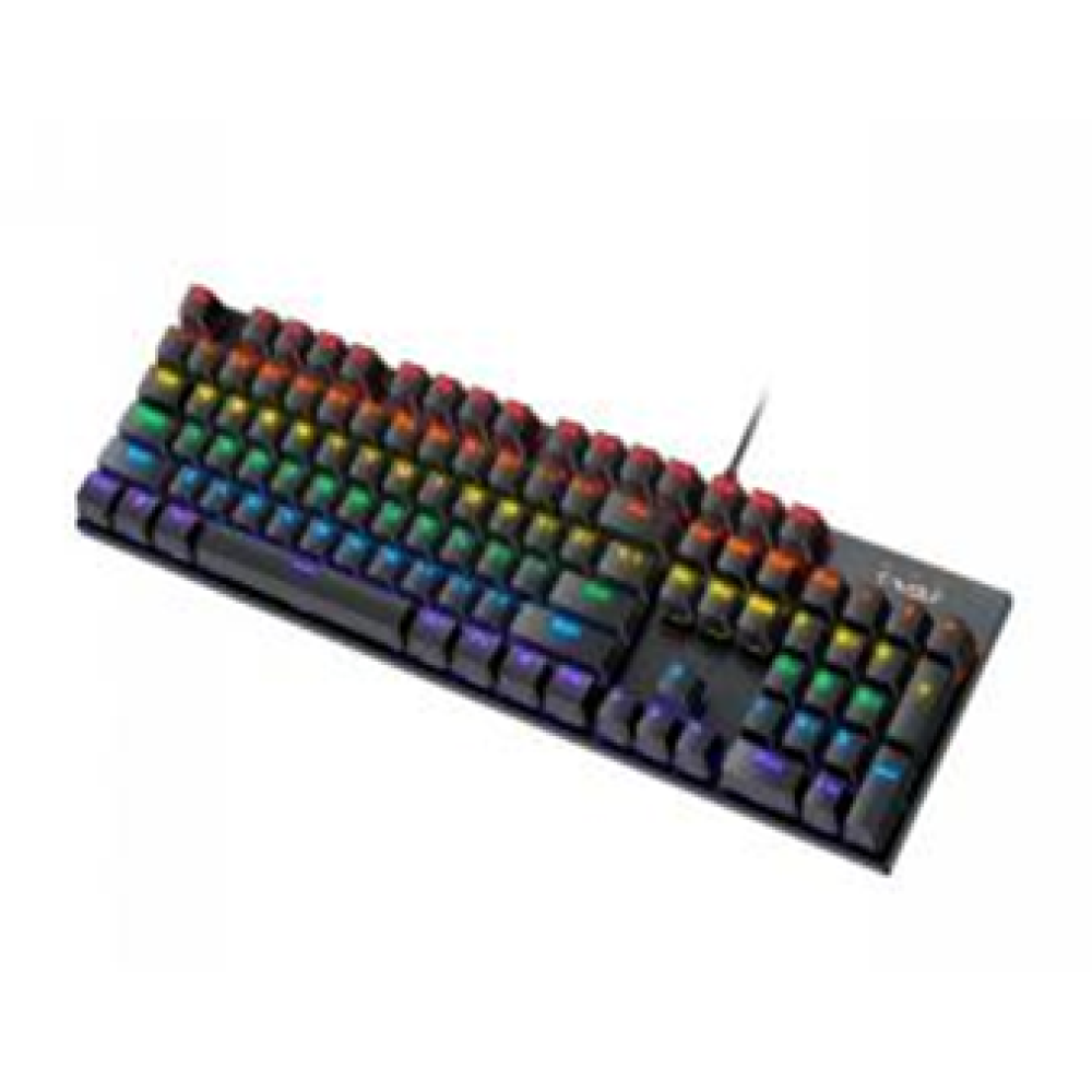 Игровая клавиатура TWolf T17 LED Blue Switch создана с использованием передовых технологий и качественных материалов для обеспечения максимально эффективного и комфортного игрового процесса. Данная модель представляет собой полноразмерную (104 клавиши) клавиатуру механического типа, которая отлично подойдёт для игр, работы и развлечений. Она выполнена в достаточно сдержанном, но стильном дизайне и дополнена семицветной LED подсветкой. RGB подсветка может работать в разных режимах и настраиваться в соответствии с предпочтениями пользователя. Её корпус надёжно собран и защищён от воды, изготовлен из прочной комбинации ABS пластика и металла. Складные подставки на нижней панели помогут удобно расположить её под углом на горизонтальной поверхности, а прорезиненные накладки предотвратят скольжение. Съёмные кейкапы переключателей выполнены методом литья из пластика двух цветов, что гарантирует сохранность и чёткую видимость символов на них. Модель снабжена переключателями типа Blue Switch, которые известны своим ощутимым тактильным откликом и характерным щелчком при нажатии. Они обеспечивают не только точный и быстрый отклик, но и приятные тактильные ощущения, что особенно ценно для геймеров и тех, кто много печатает. Ресурс их нажатий составляет 50 миллионов раз. Поддержка технологии Anti-ghosting (Multi Keys) поможет с лёгкостью и невероятной скоростью выполнять даже самые сложные комбинации без срабатывания функции залипания клавиш. Подключение клавиатуры к компьютеру, ноутбуку или другому совместимому устройству осуществляется с помощью встроенного кабеля с разъёмом USB (male). Длина кабеля составляет 1.5 метра.