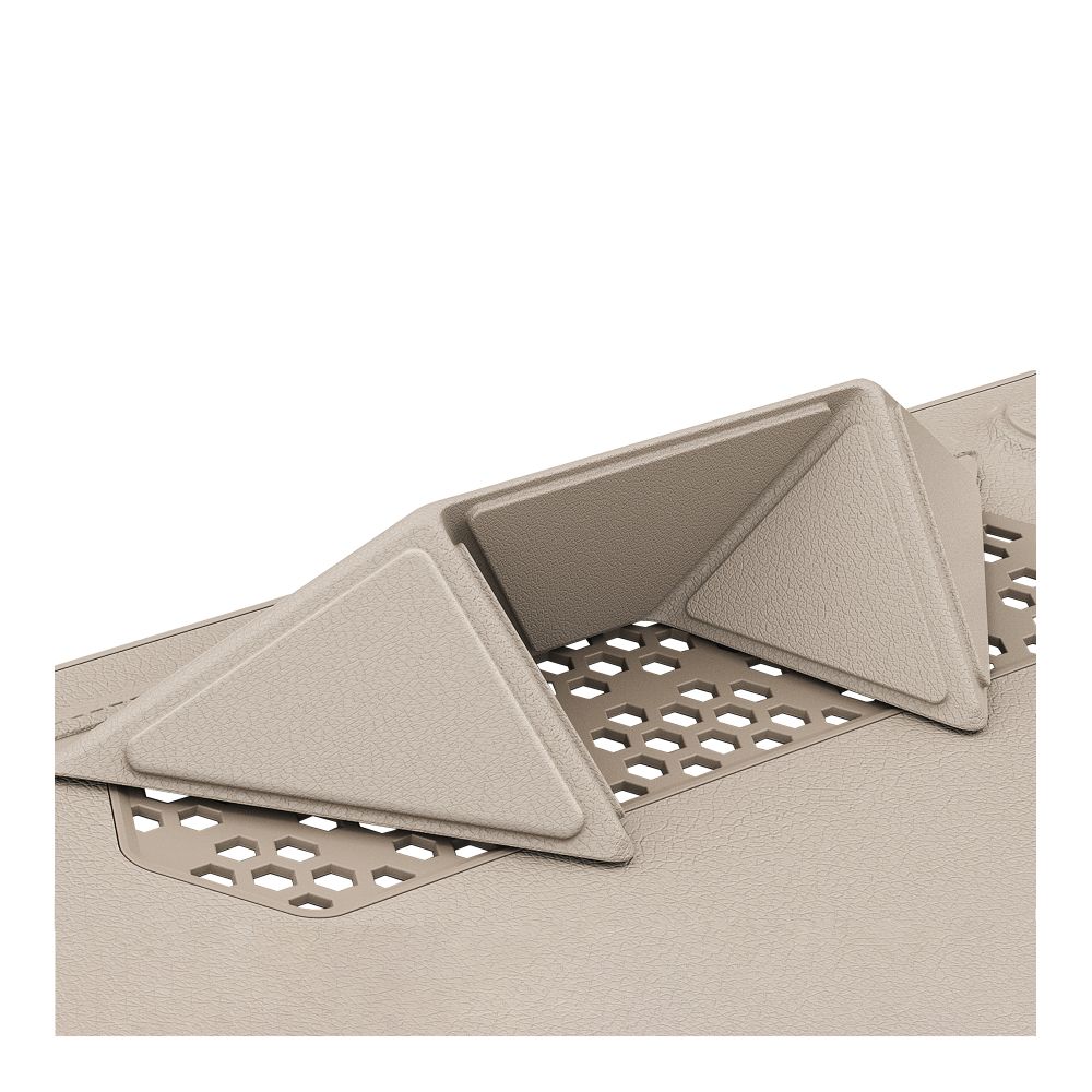 Конструкция состоит из двух жёстких панелей, которые плотно охватывают верхнюю и нижнюю части устройства. Внешняя полиуретановая отделка не только приятна на ощупь, но и не оставляет следов и не скользит в руках. Материалы чехла устойчивы к ультрафиолету, потертостям, ударам и царапинам. Для комфорта предусмотрена встроенная складная подставка, которая позволяет регулировать угол наклона, а вентиляционные вставки обеспечивают охлаждение во время работы.