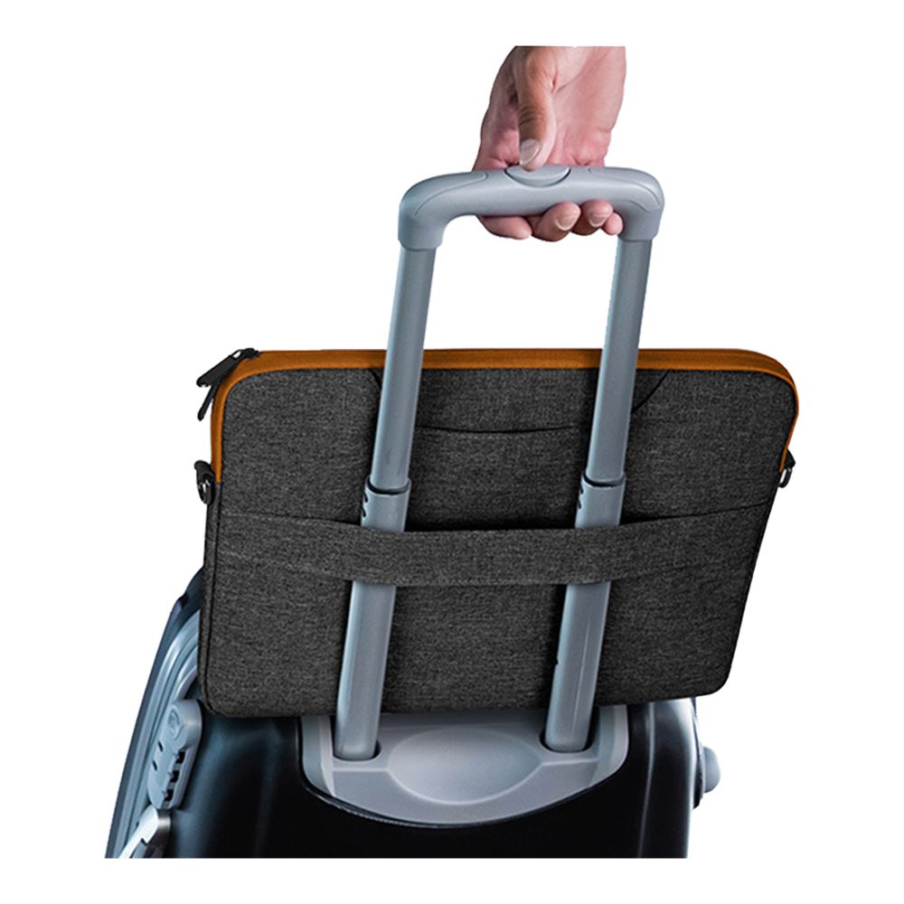 • Тонкий (3 см), но вместительный корпус — вмещает ноутбук, документы и аксессуары.