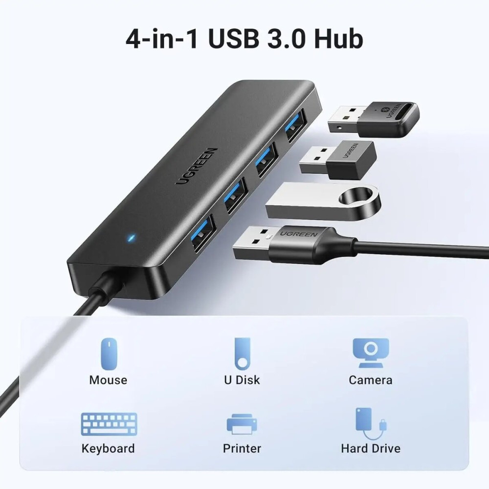 Очень часто в ПК не остаётся свободных USB-портов или работает только один разъём, что крайне неудобно. USB-хаб UGREEN CM219 предлагает удобное и эффективное решение для расширения возможностей подключения устройств (мышей, клавиатур, флеш-накопителей, приставок и т. д.) к вашему ноутбуку или ПК. Хаб UGREEN CM219 превратит один ваш порт USB сразу в четыре функциональных разъёма USB-A, что позволит подключить одновременно несколько гаджетов без потери производительности.