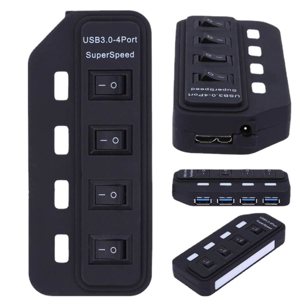 Хаб USB 3.0 с четырьмя портами с подсветкой и выключателями.