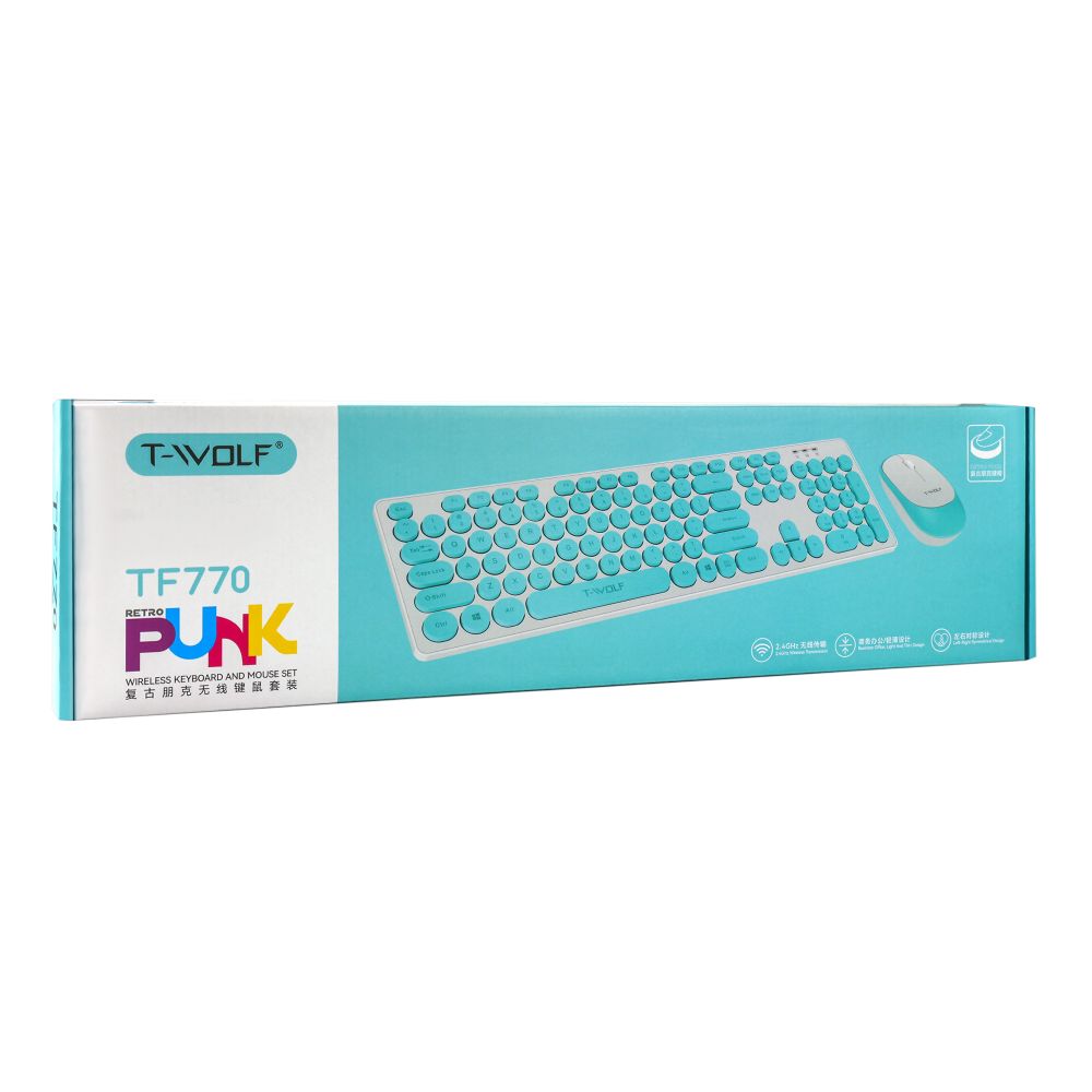 Беспроводная клавиатура и мышь TWolf TF770 – это комплект современной компьютерной периферии, который идеально подойдет для работы как в офисе, так и дома. Устройства выделяются исключительной надежностью и эргономичностью, выполнены в схожем дизайне и гармонично сочетаются друг с другом. Особенности и преимущества клавиатуры: • Ретро-панк стиль с округлыми клавишами и двухцветной расцветкой. • Небольшая толщина и стандартный набор клавиш (104 кнопки). • Прочный корпус из высококачественного ABS пластика. • Противоскользящие накладки и складные подставки на нижней панели. • Клавиши с приятной на ощупь поверхностью и тактильным откликом. • Четкие символы, нанесенные методом лазерной гравировки. • LED индикаторы для контроля основных функций устройства. • Длительное время работы от одной сменной батарейки стандарта AAA. Основные особенности мыши: • Элегантный дизайн с двухцветной расцветкой. • Компактные размеры (105x60x30мм) и легкий вес (59г). • Эргономичная симметричная форма, удобная для хвата любой рукой. • Прочный корпус с приятной на ощупь матовой поверхностью. • Колесо прокрутки и две стандартные кнопки с необычайно тихим щелчком. • Современный оптический сенсор с разрешением 1200DPI. • Длительное время работы от одной сменной батарейки стандарта AA. Беспроводное соединение устройств с компьютером осуществляется на частоте 2,4GHz с помощью общего USB адаптера. TWolf TF770 – это идеальное решение для тех, кто ценит комфорт, стиль и надежность. Этот комплект сочетает в себе современный дизайн и высокую функциональность, обеспечивая комфортную работу за компьютером.
