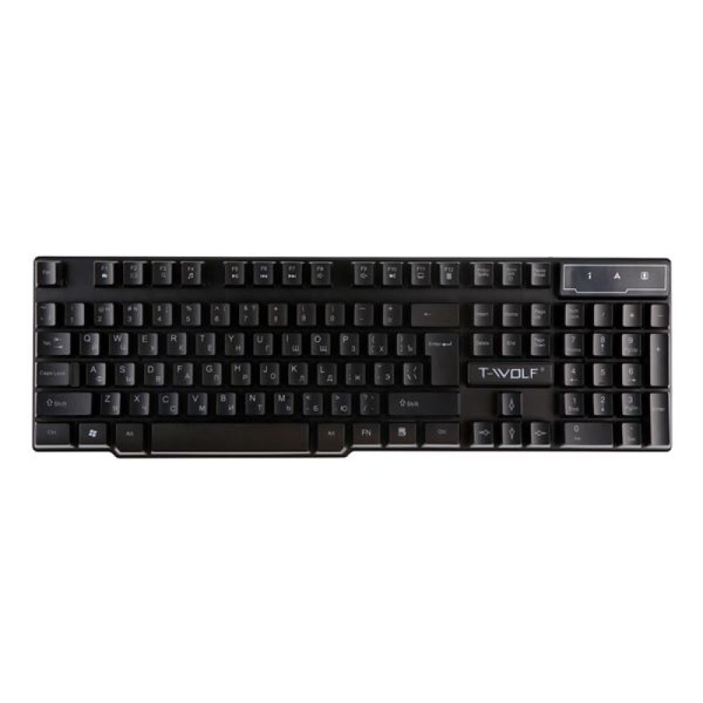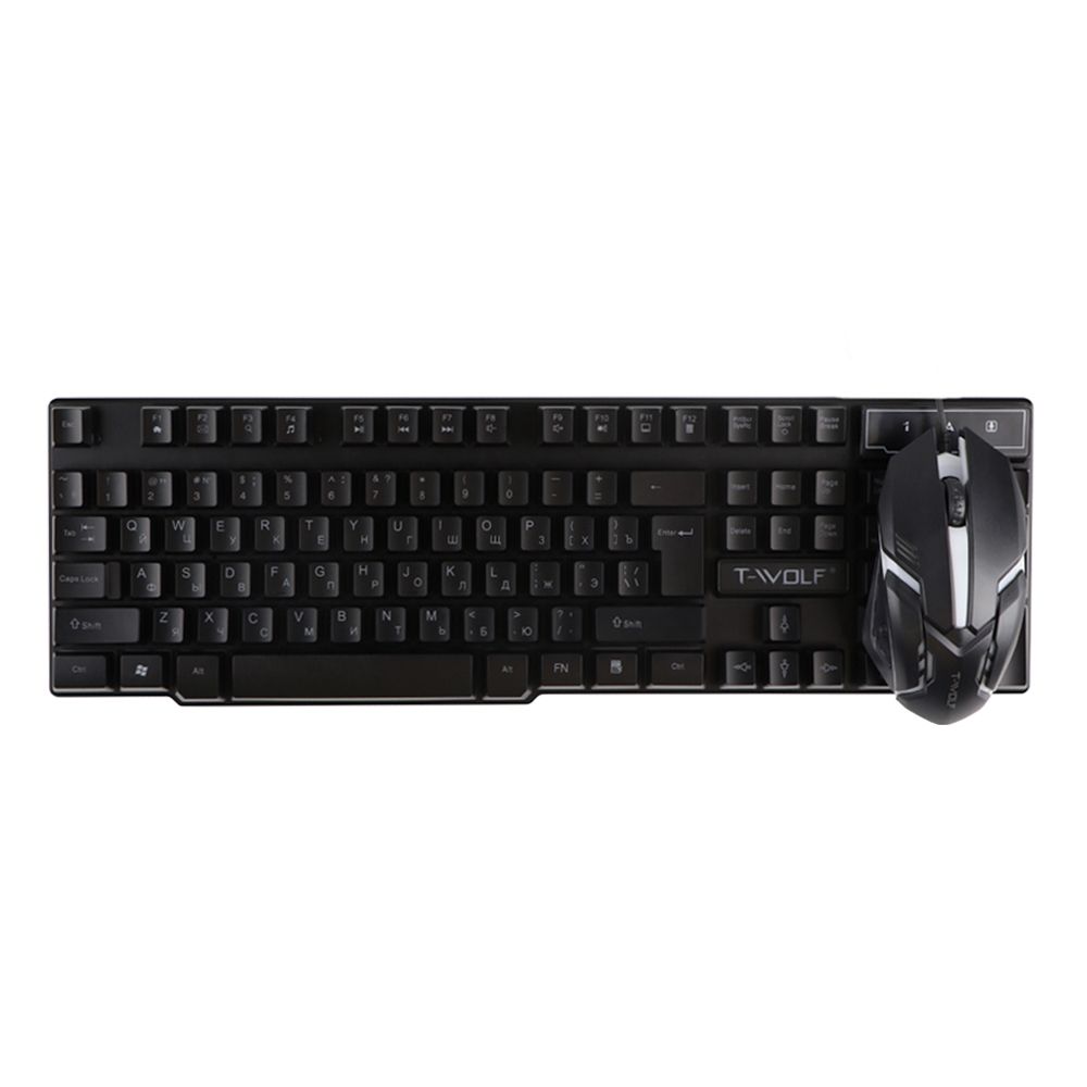 Клавиатура и мышь TWolf TF200 – это недорогой комплект компьютерной периферии, который идеально подойдёт для работы и развлечений. Оба устройства выполнены в стильном, эргономичном дизайне, выделяются исключительной надёжностью и длительным сроком службы. Мембранная клавиатура со стандартным набором клавиш (104 штуки) имеет достаточно компактные размеры за счёт отсутствия рамки по периметру. Её корпус защищён от воды, изготовлен из прочных материалов. Прорезиненные накладки на нижней панели предотвратят её скольжение по столу, а складные подставки помогут расположить её под углом на горизонтальной поверхности. Съёмные колпачки кнопок выполнены методом литья под давлением из пластика двух цветов, поэтому основные символы на них чётко видны. Они слегка приподняты над верхней панелью, что в сочетании с красочной градиентной подсветкой создаёт парящий визуальный эффект. Второстепенные символы нанесены на них лазером и не стираются со временем. Благодаря технологии Anti-ghosting (Multi Keys) она способна регистрировать даже сложные комбинации без срабатывания функции залипания клавиш. При нажатии клавиши клавиатуры имитируют тактильную обратную связь механических переключателей. Её подключение к совместимым устройствам осуществляется с помощью встроенного кабеля с разъёмом USB (male). Мышь имеет практичную, симметричную форму и небольшой вес, поэтому её удобно и легко держать любым хватом левой или правой рукой. Дышащая RGB-подсветка подчёркивает её привлекательный внешний вид и игровую направленность. Её корпус изготовлен из прочного ABS-пластика с приятной на ощупь поверхностью. Легко выполнять все необходимые действия помогут две её стандартные кнопки с отличным откликом и ребристое колесо прокрутки. Точное слежение её перемещений на любой поверхности обеспечивается оптическим сенсором чувствительностью 1600 DPI. Длина её встроенного кабеля с разъёмом USB (male) составляет 135 сантиметров.